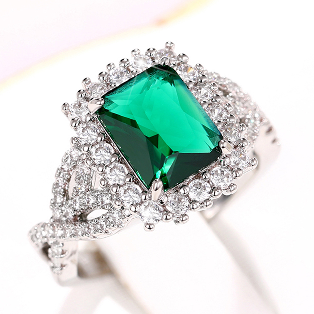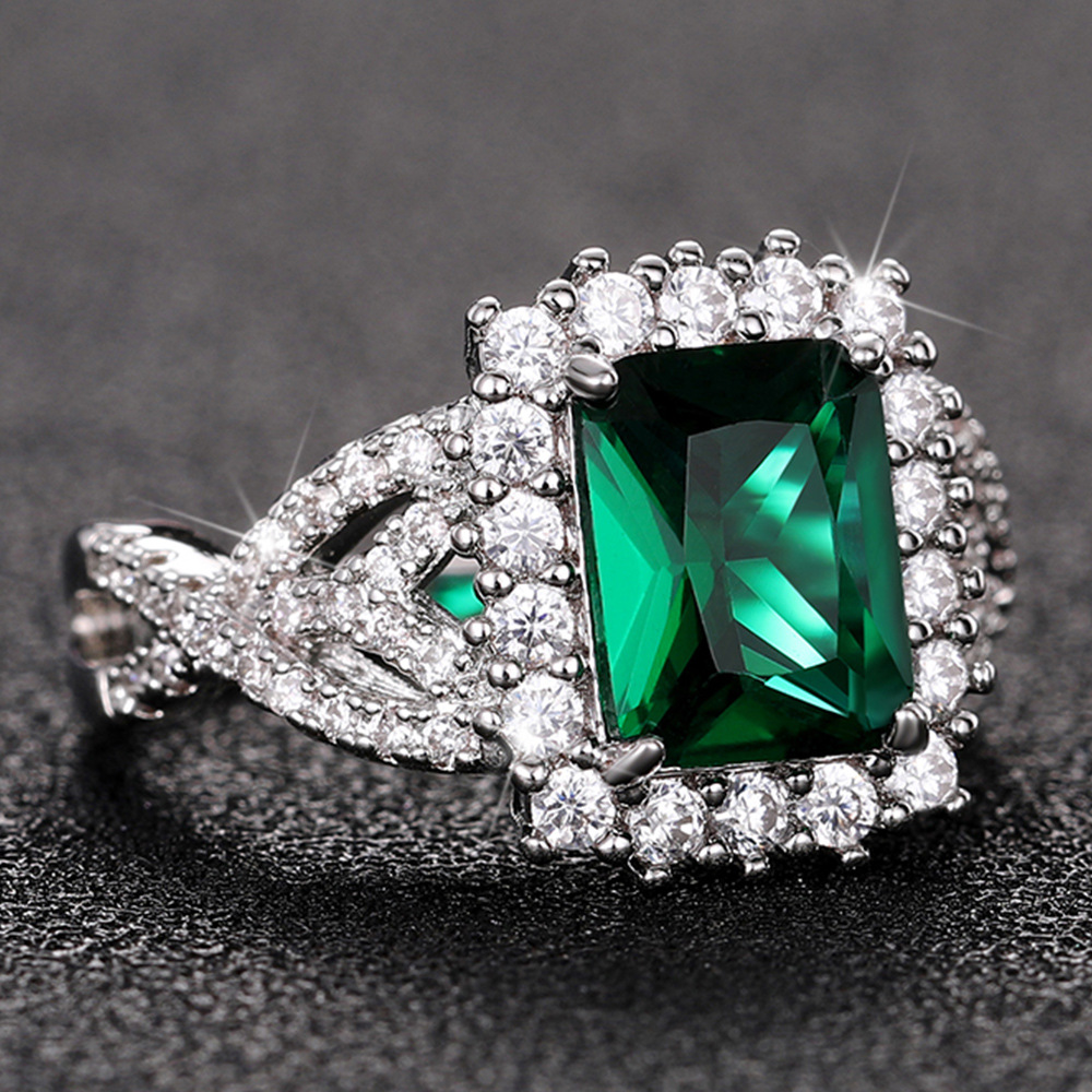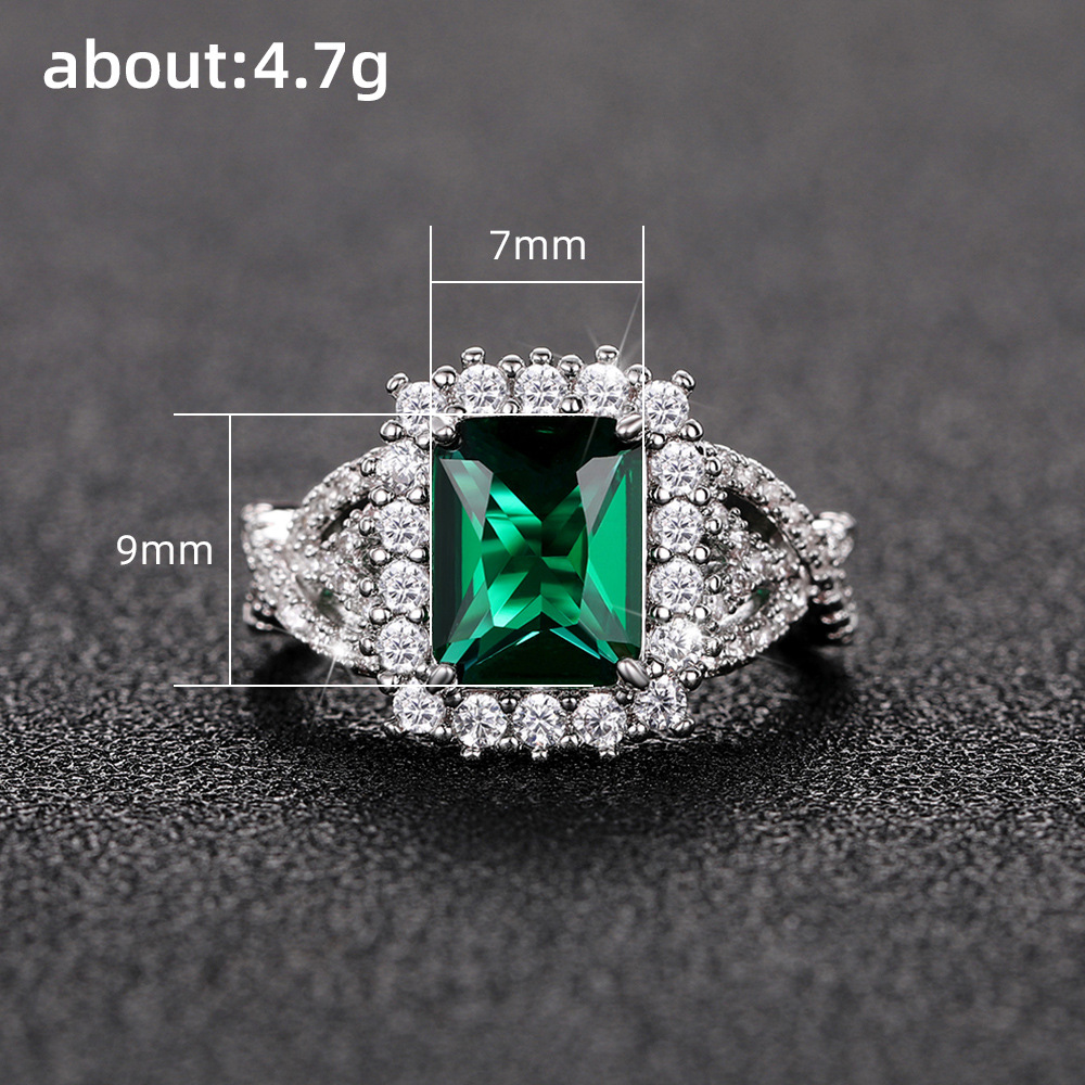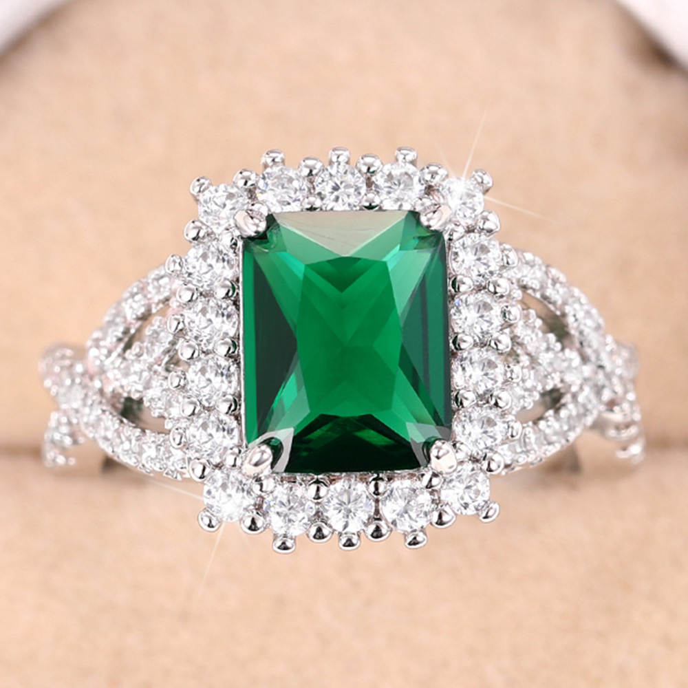 Source Emerald Green Square Zircon Ring Luxury White Gold Plated Women's Ring