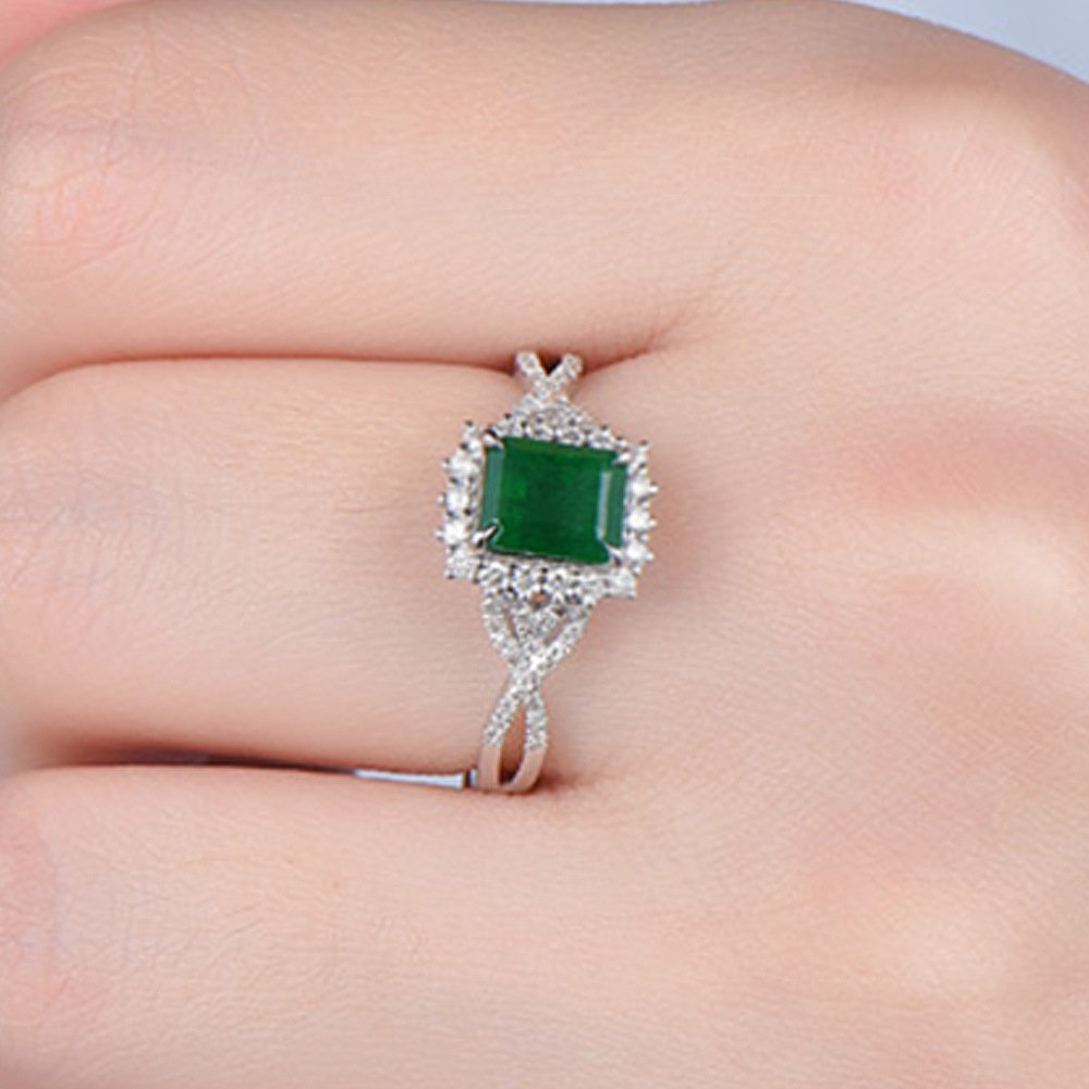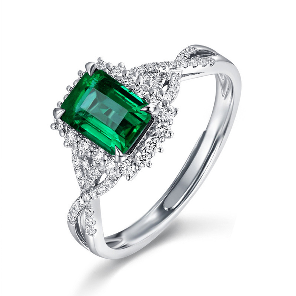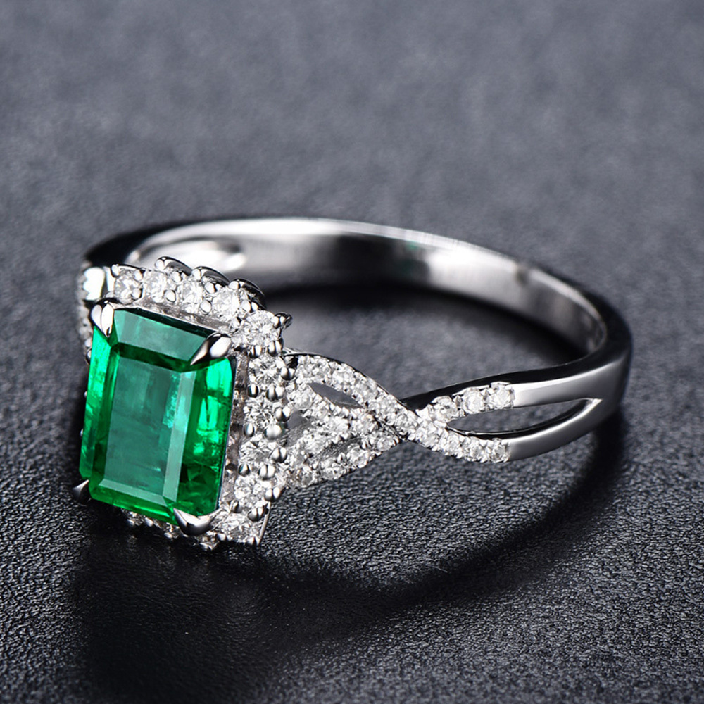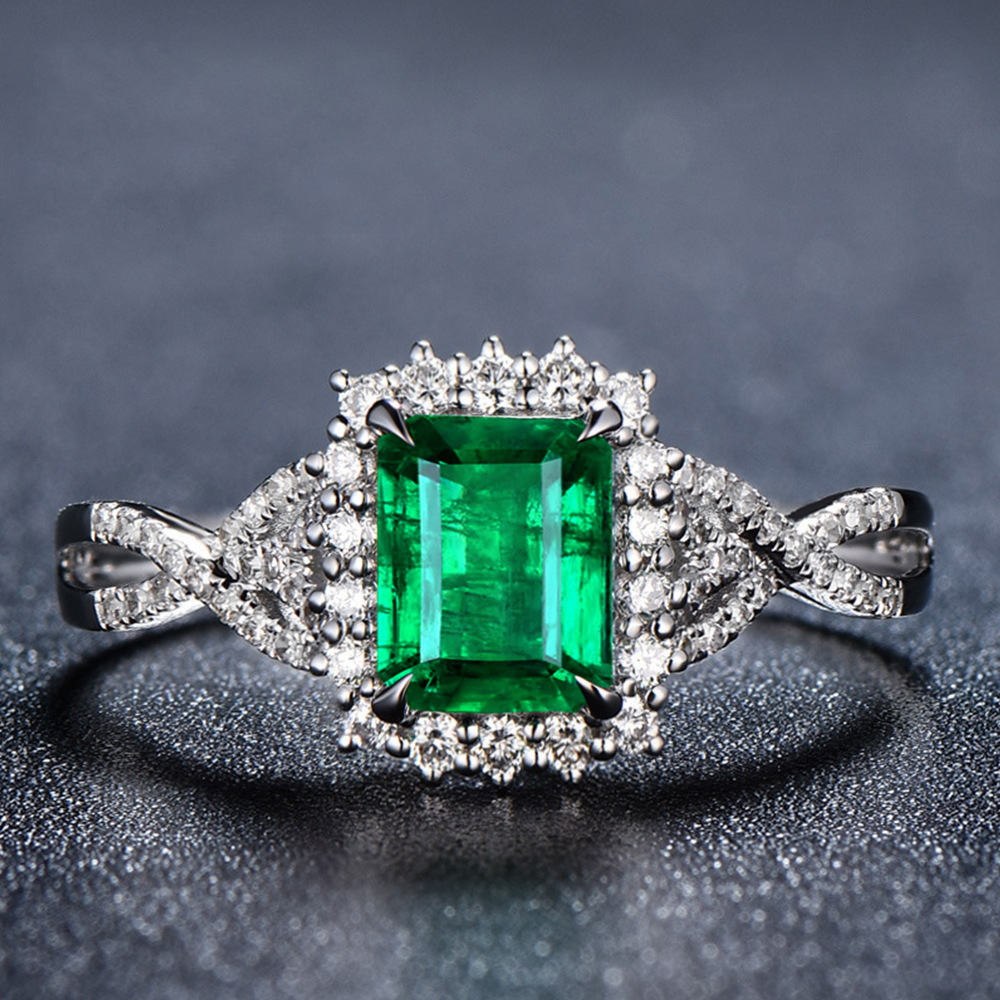 Source Emerald Green Square Zircon Ring Luxury White Gold Plated Women's Ring