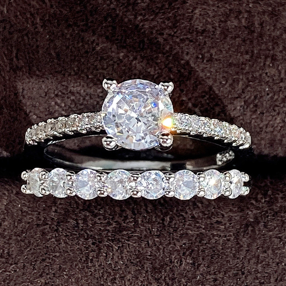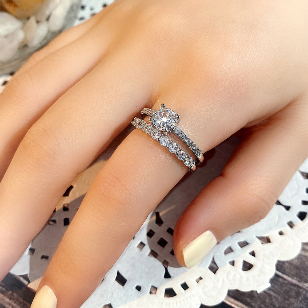 Source factory wholesale fashion simple AAA zircon two-piece female popular ring