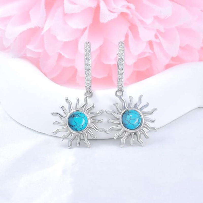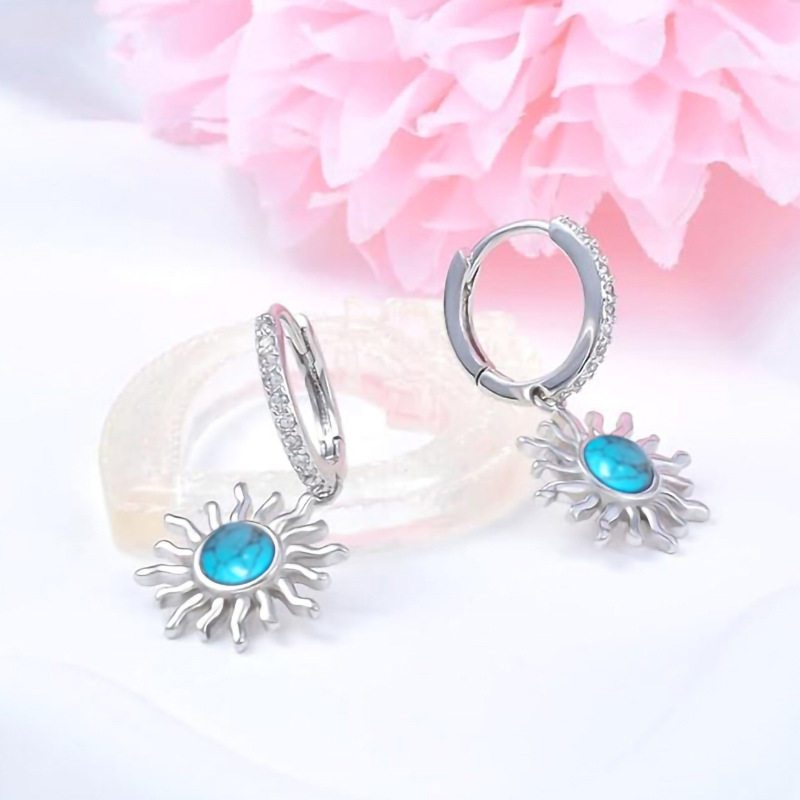 Source manufacturer retro imitation turquoise earrings for women sunflower exquisite design jewelry light luxury style fashion sense