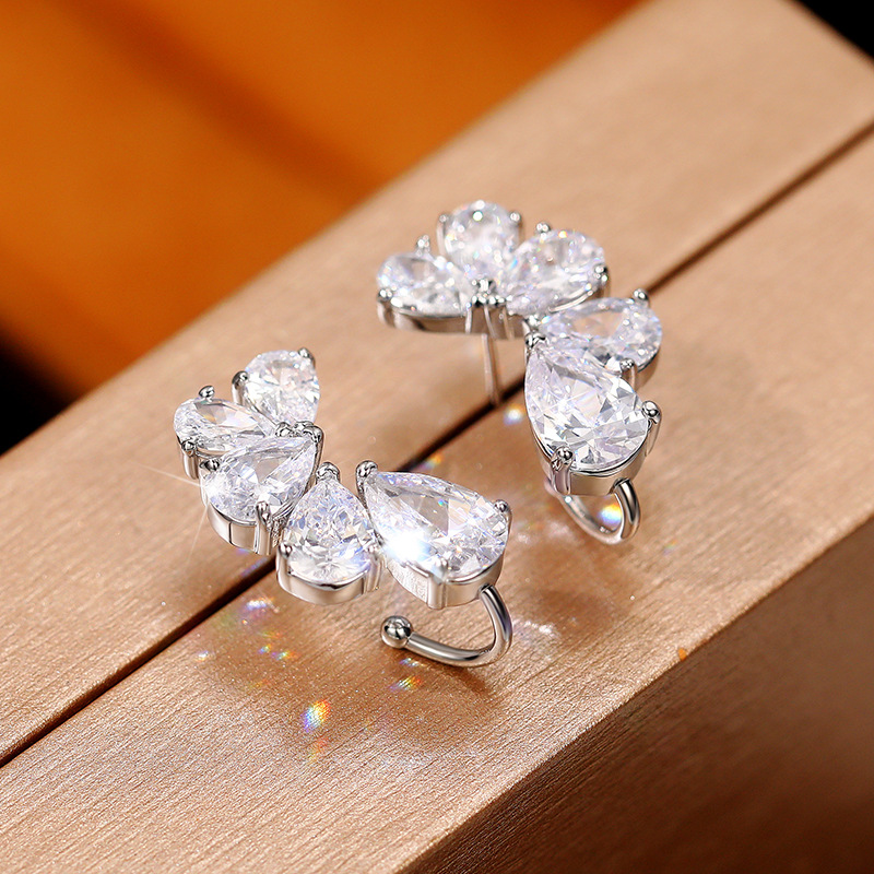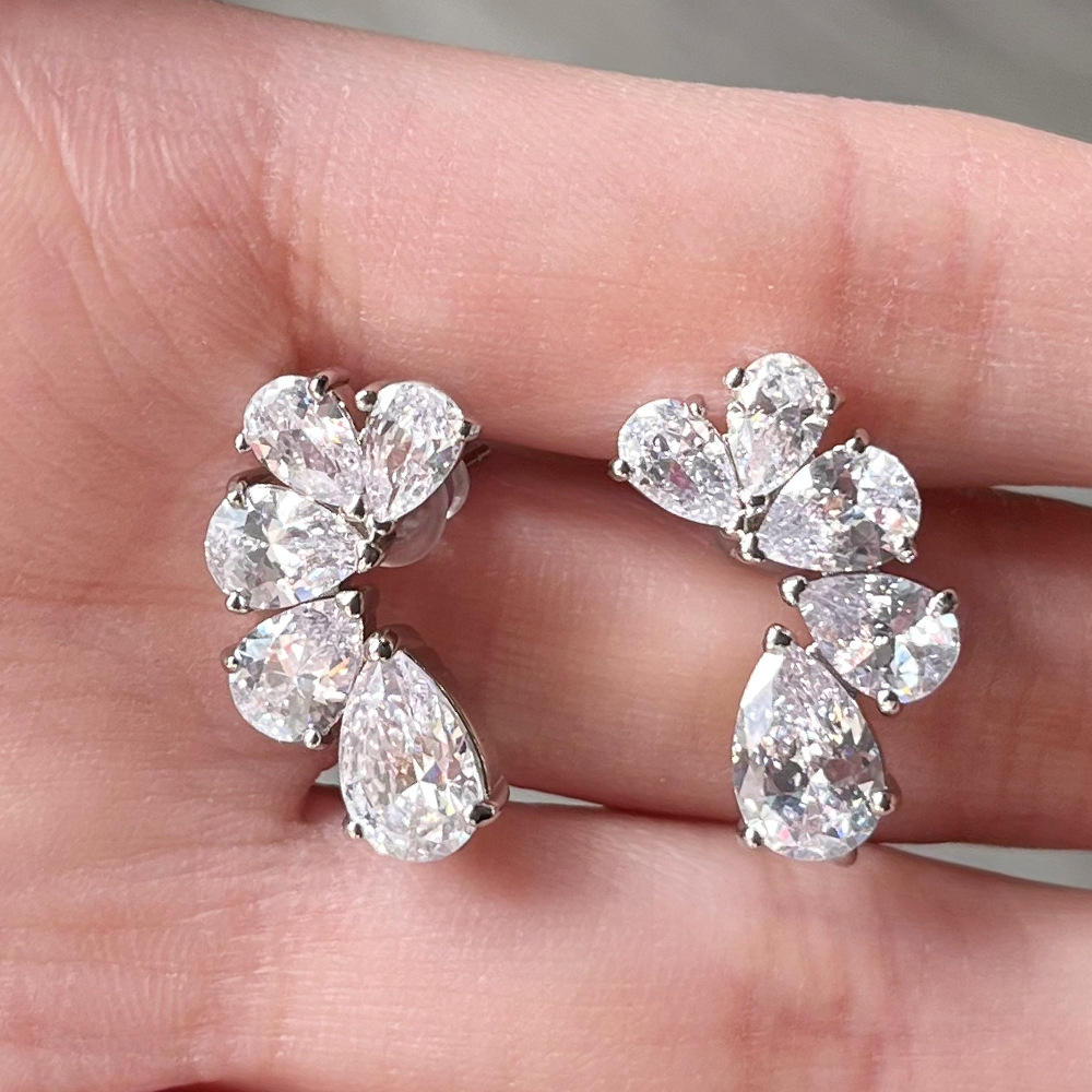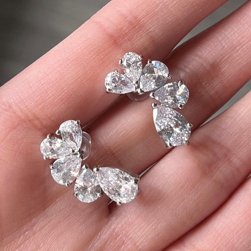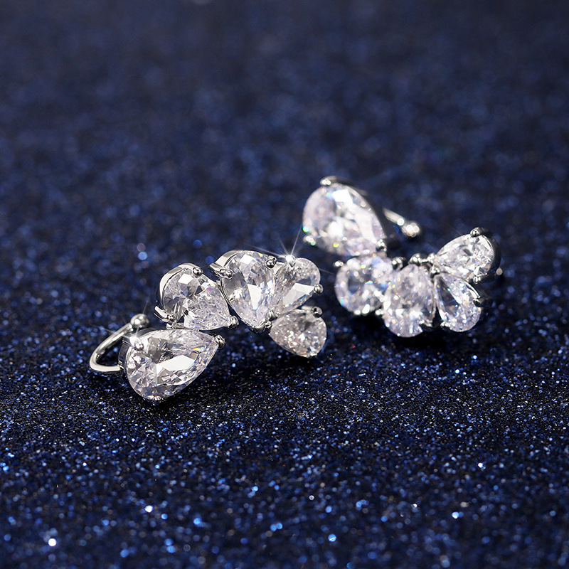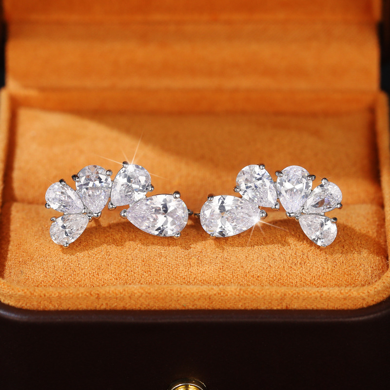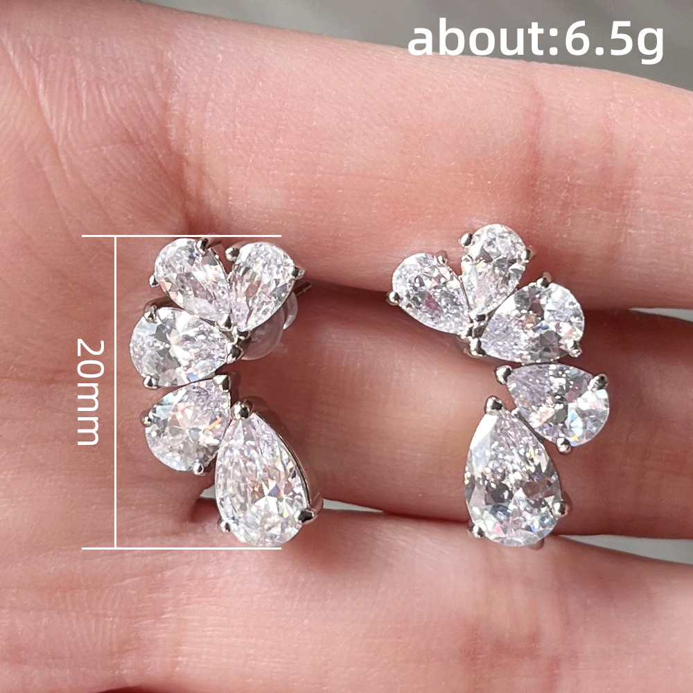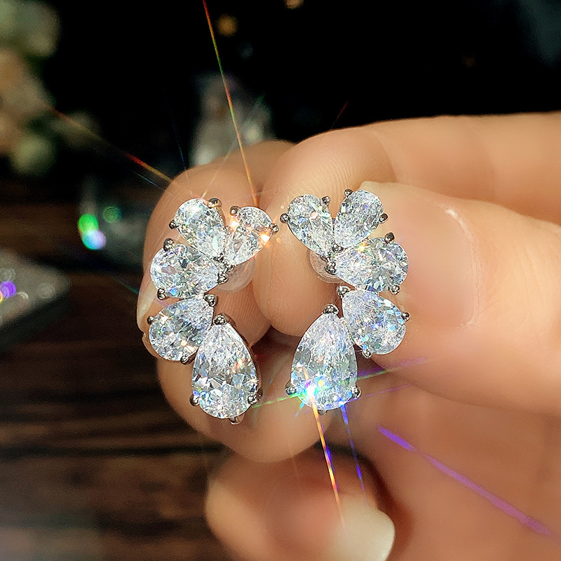 South Korea's Dongdaemun new earrings micro-inlaid water drop zircon flower earrings temperament petals all-match earrings