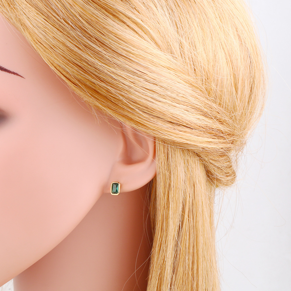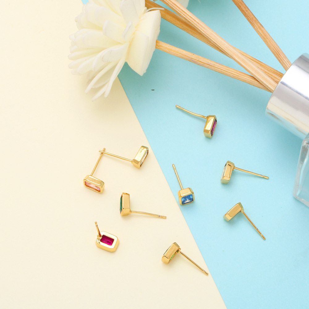Sparkling diamond color rectangular zircon earrings sweet simple versatile small exquisite earrings earrings female erq42