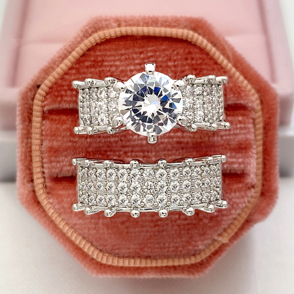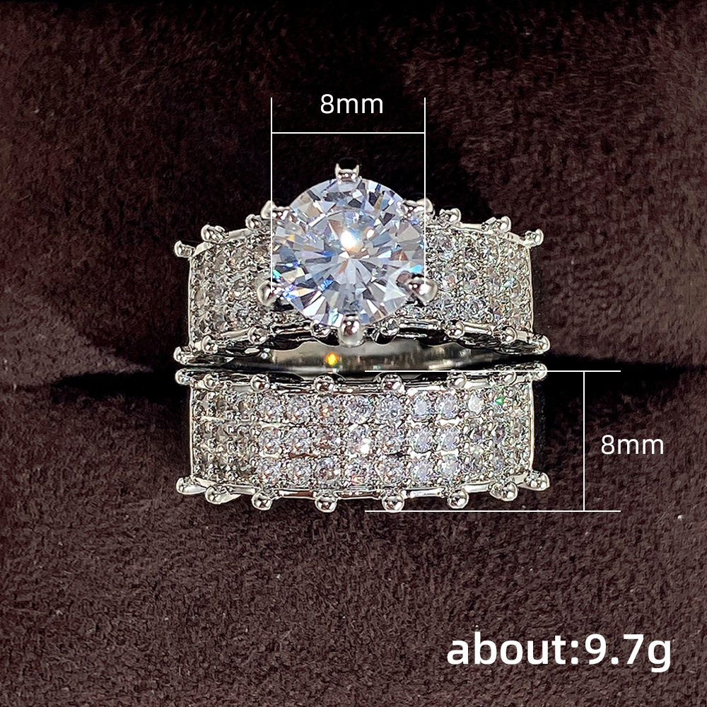 Sparkling double-layer women's ring set, high-end zircon platinum-plated luxury wedding ring, evening bridal jewelry