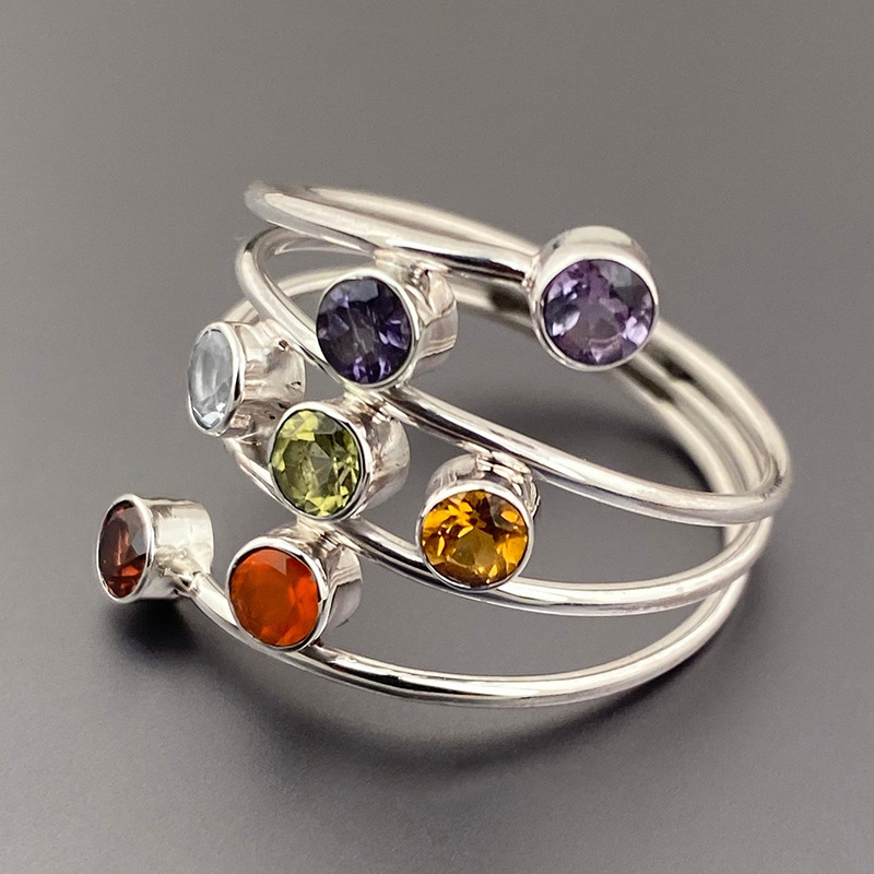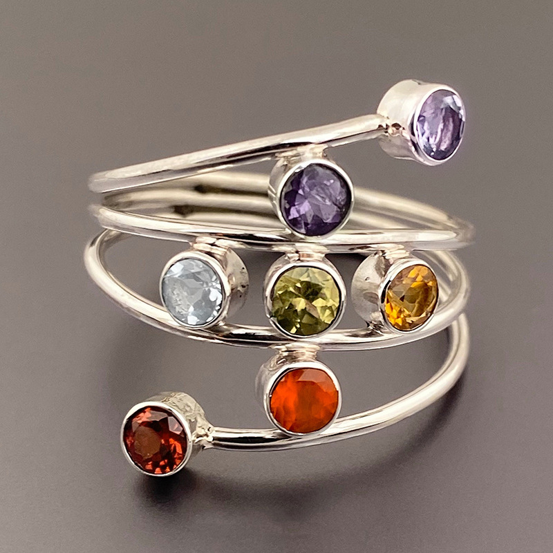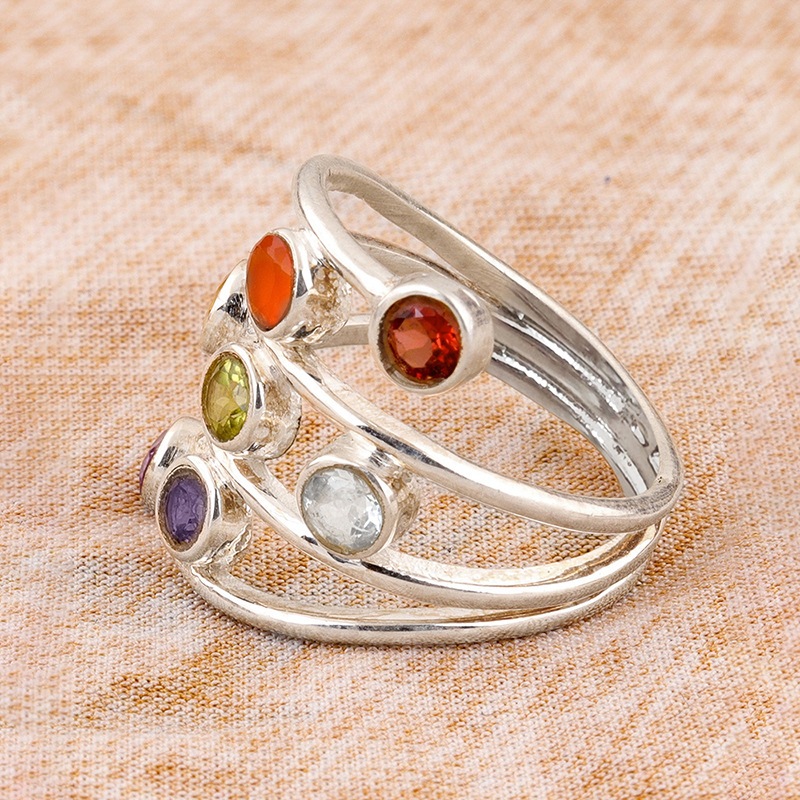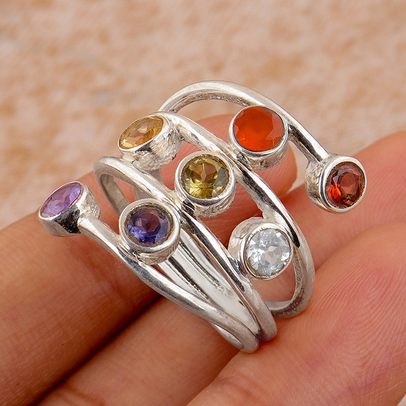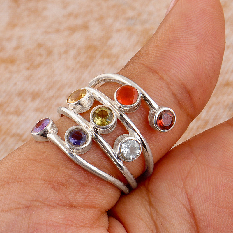 Special-shaped combination colored ring for women, colorful zircon eye-catching design, ring wrapped with multi-layer line jewelry