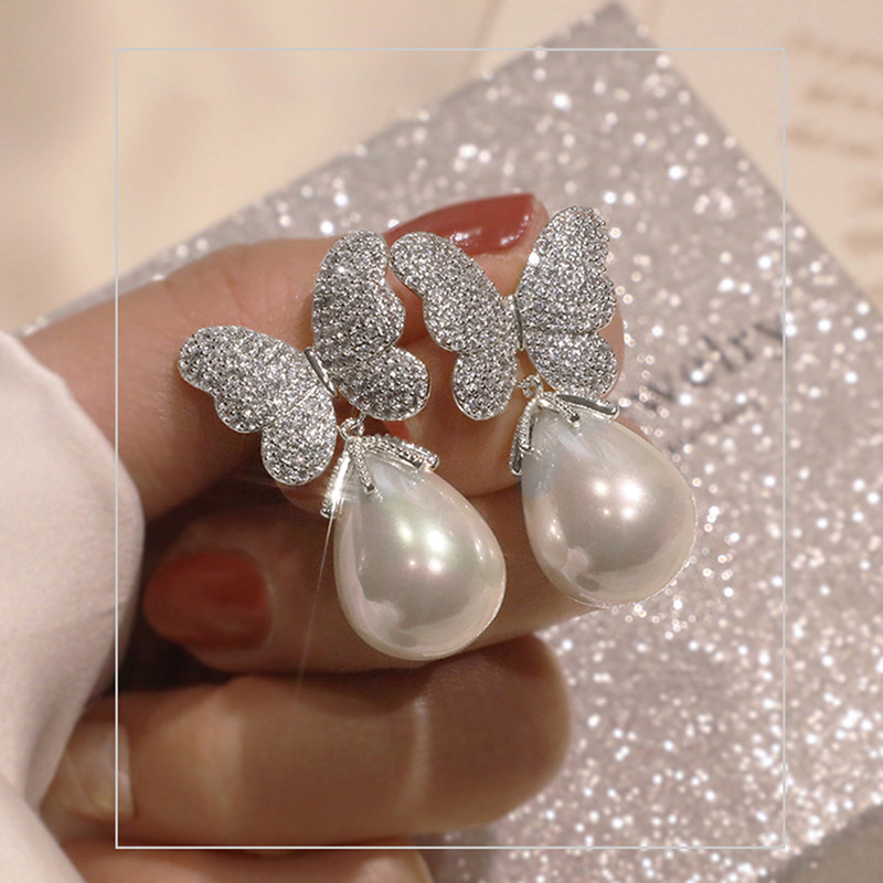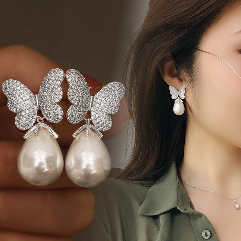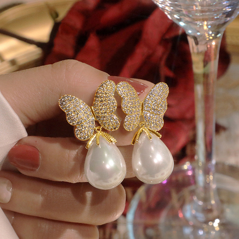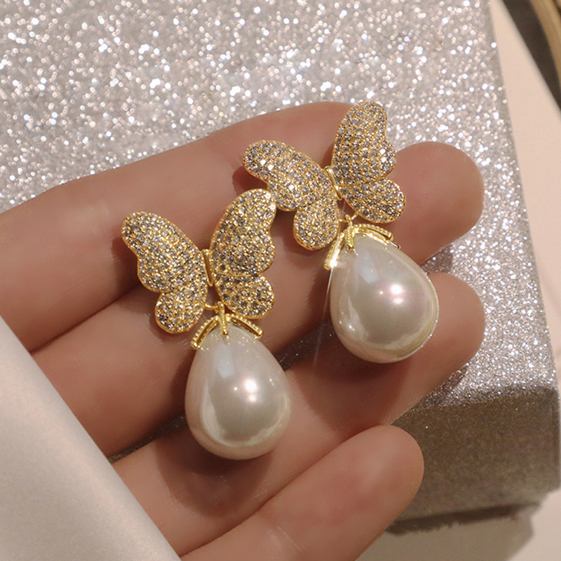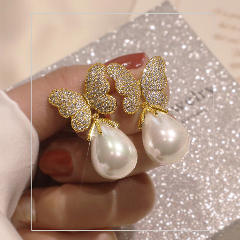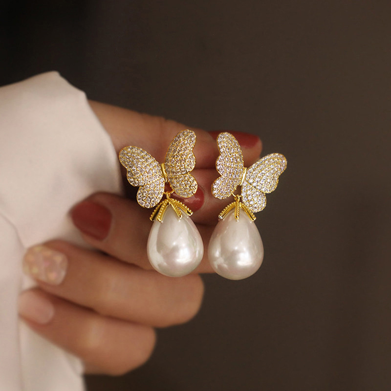 Special-shaped Korean version of gentle and elegant butterfly earrings for women, fashionable and exquisite imitation pearl earrings, princess temperament style