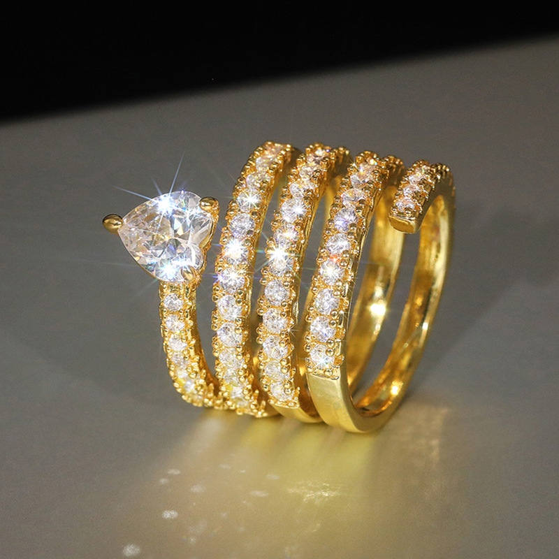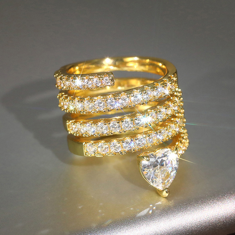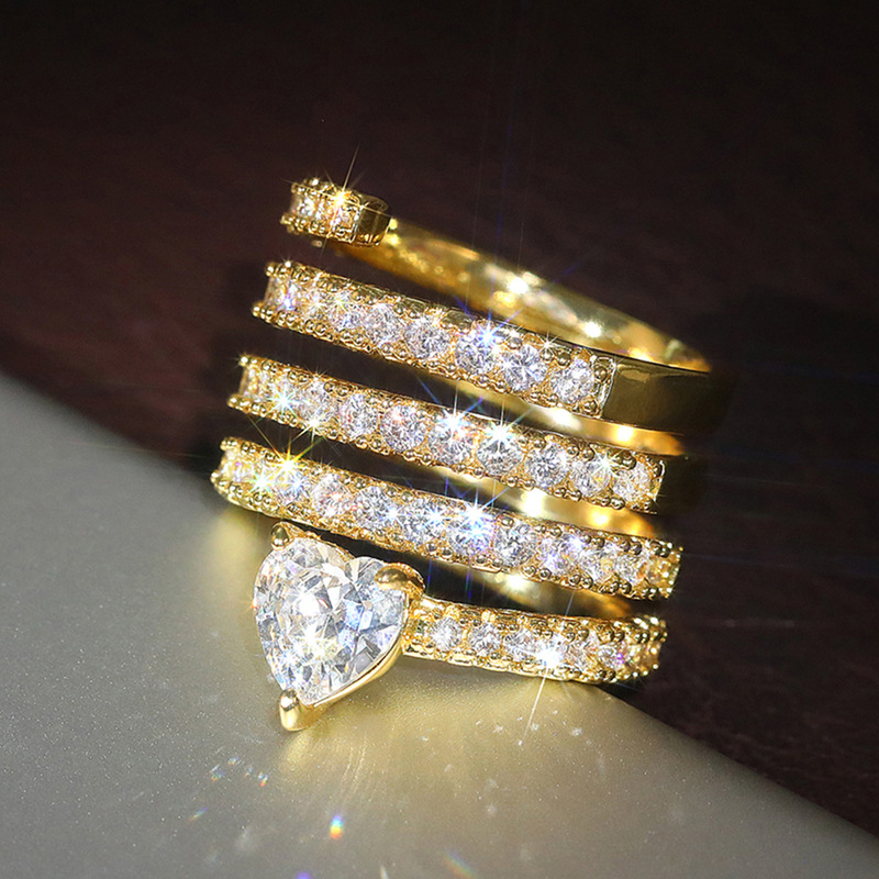 Special-shaped niche light luxury ring multi-layer ring love heart-shaped fashion jewelry women's shiny zircon jewelry