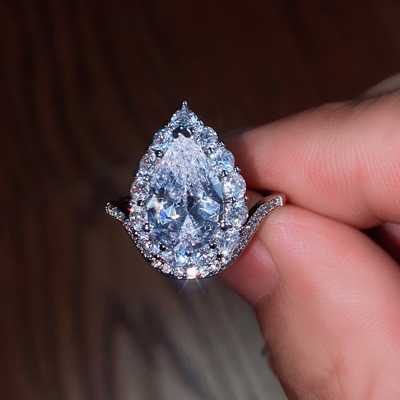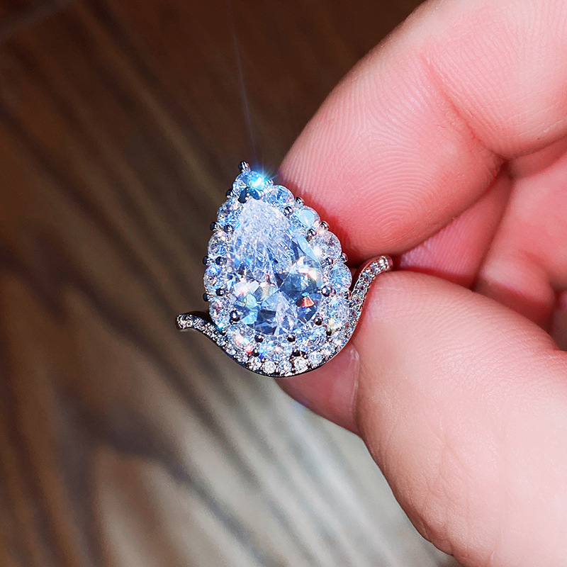 Specially supply European and American jewelry simple creative pear-shaped teardrop ring female inlaid AAA zircon ring
