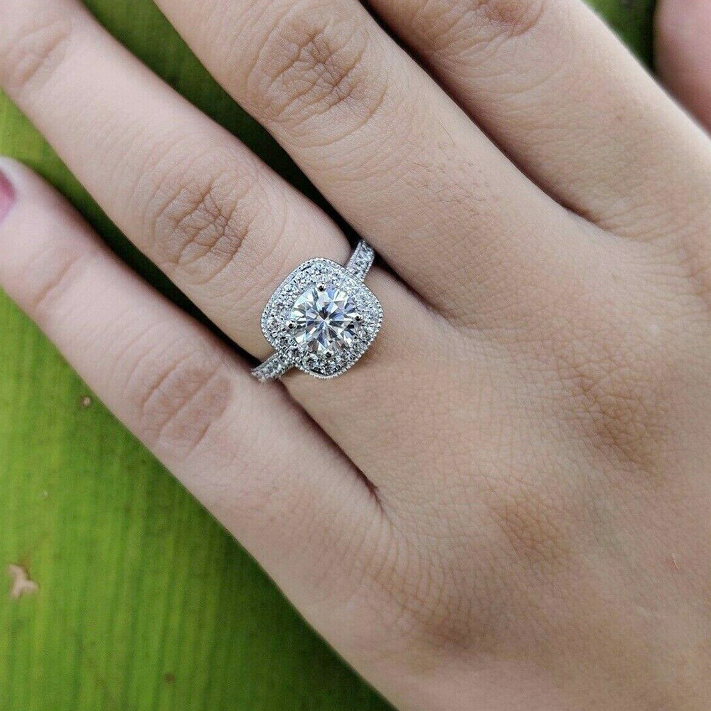Micro-inlaid celebrity style classic all-match popular ring six-claw zircon wedding ring European and American style light luxury ring