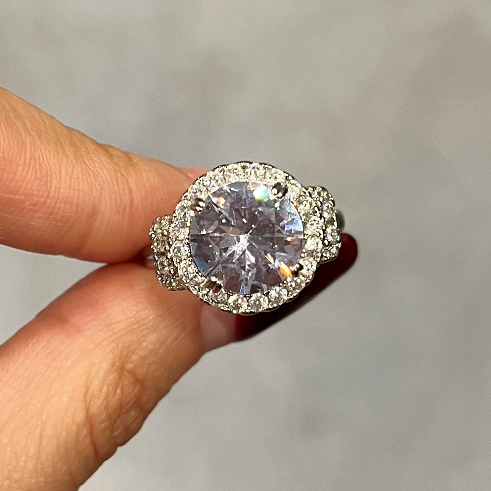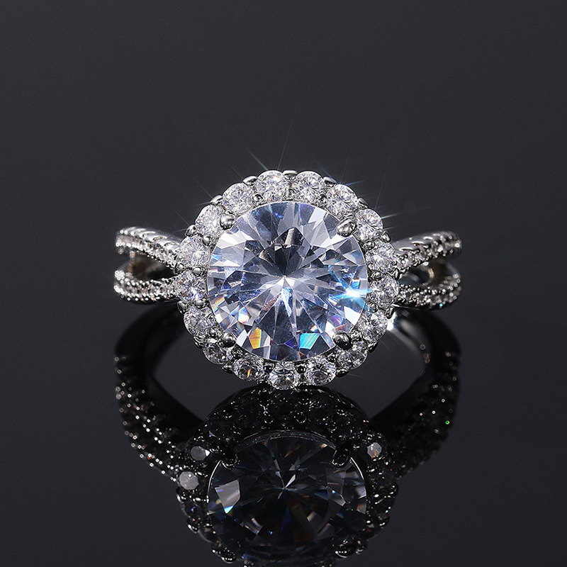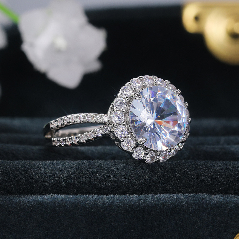 Micro-inlaid celebrity style classic all-match popular ring six-claw zircon wedding ring European and American style light luxury ring