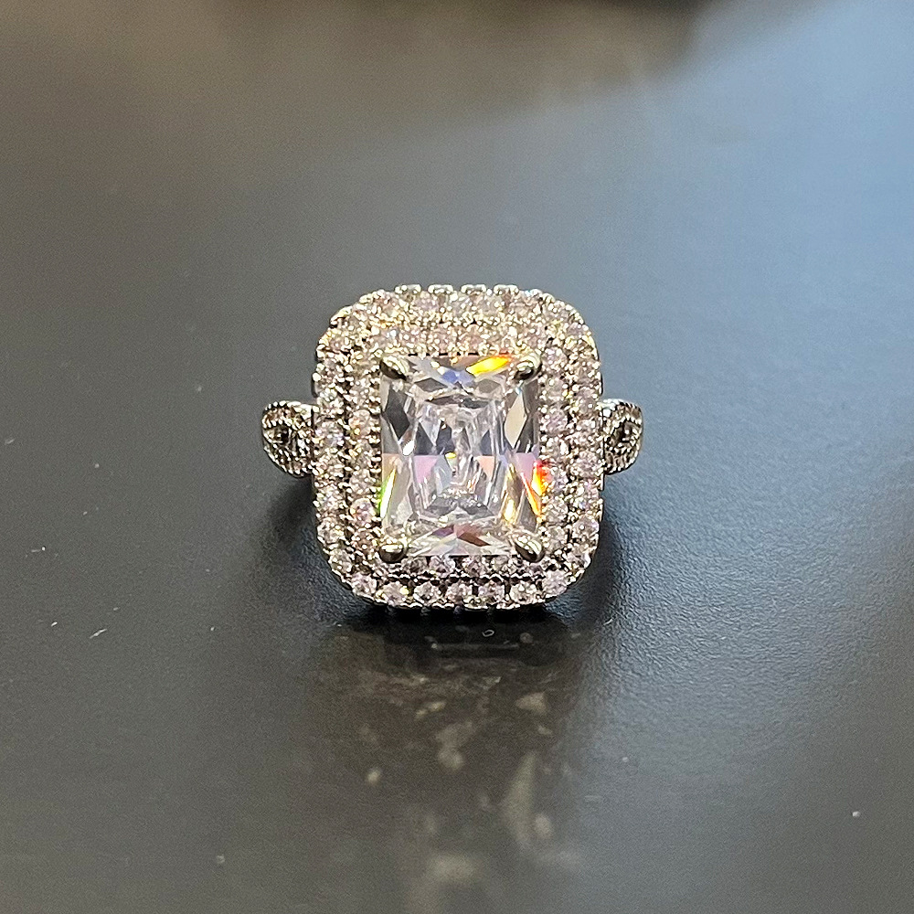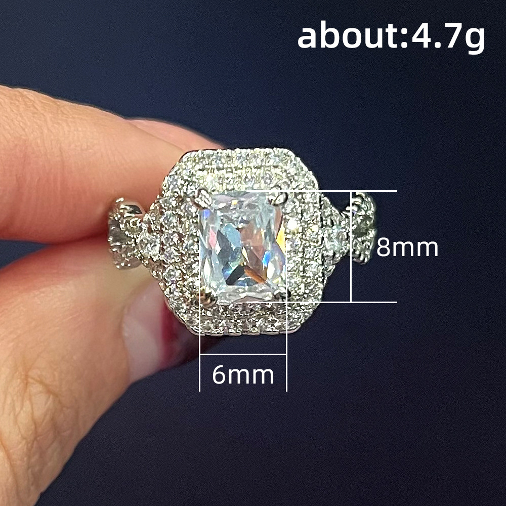Hot selling new princess square ring European and American hot style inlaid zircon women's jewelry engagement proposal ring
