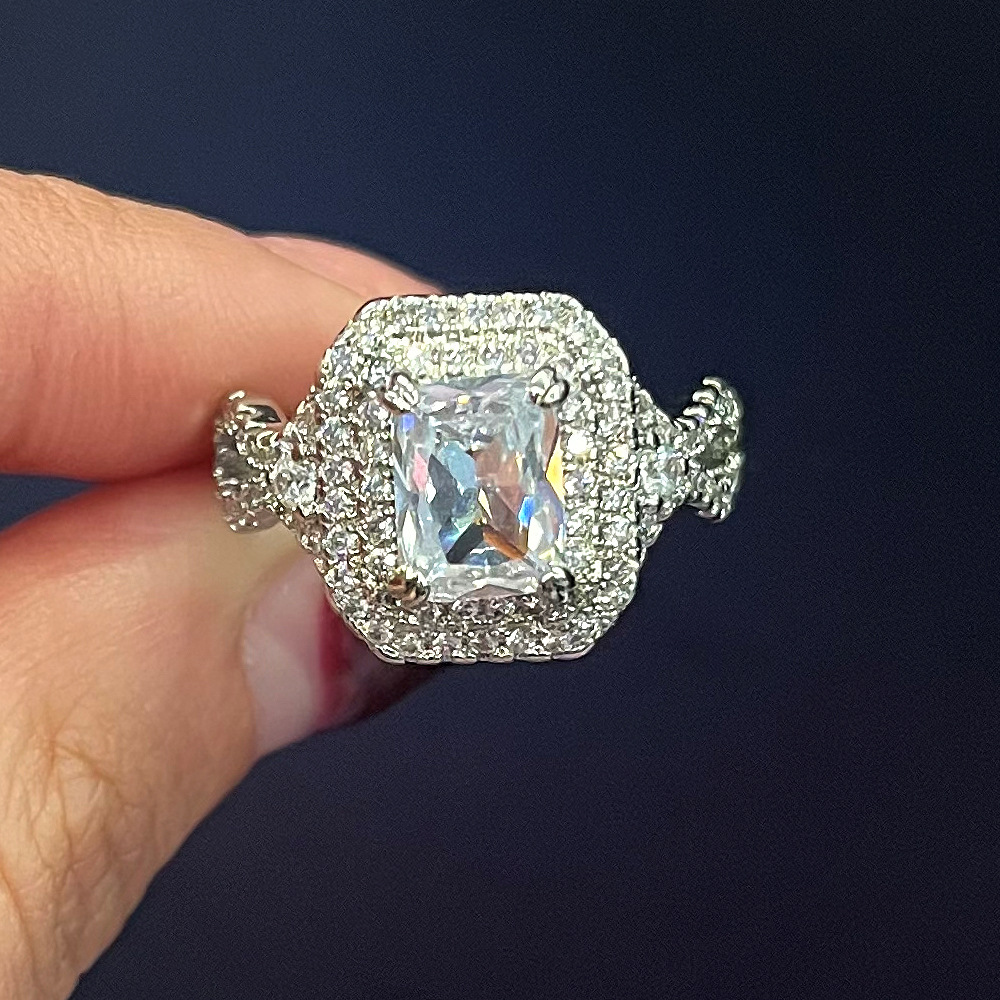 Classic four-claw imitation zircon micro-inlaid ring women's double row two-color twist arm ring engagement wedding ring women