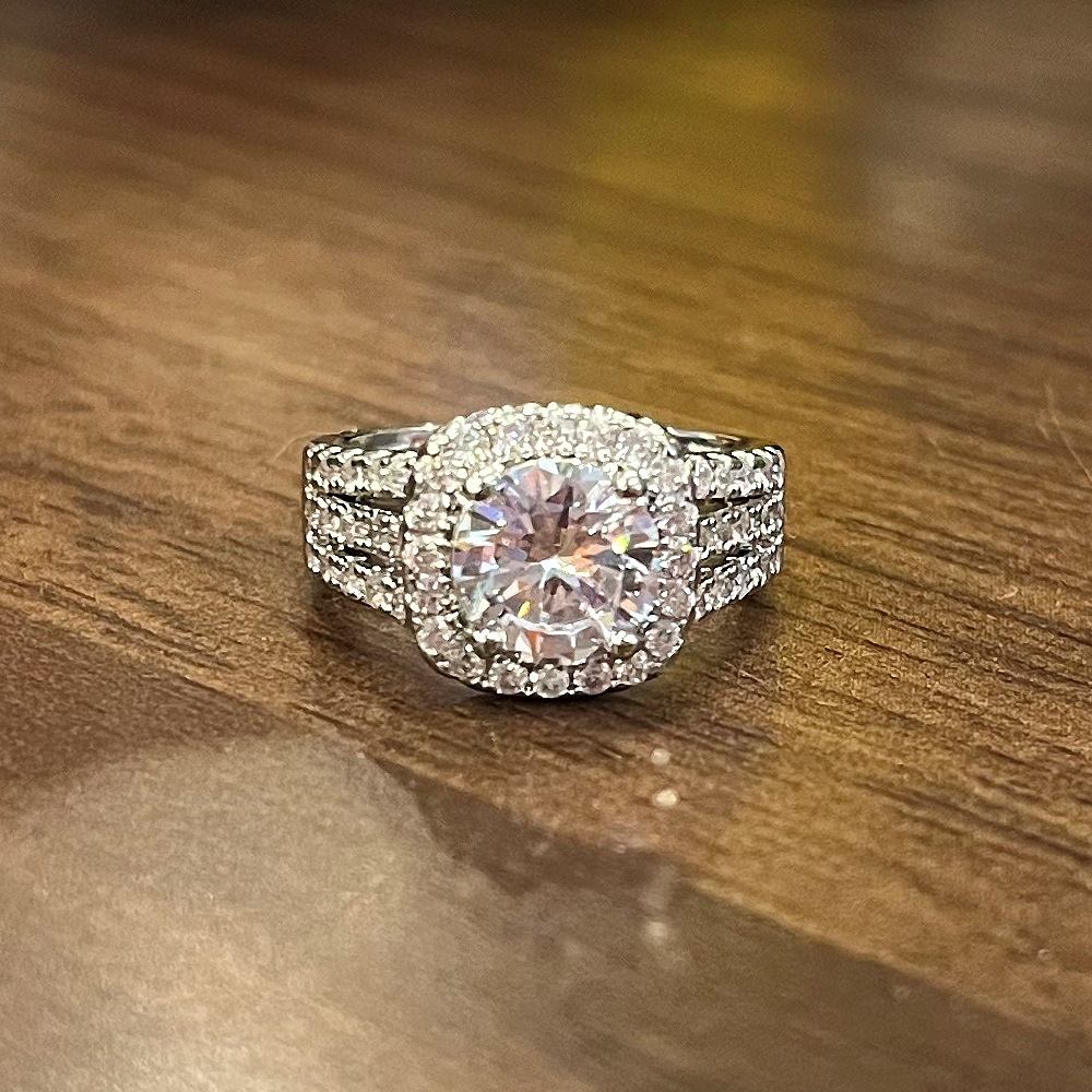 Micro-inlaid celebrity style classic all-match popular ring six-claw zircon wedding ring European and American style light luxury ring