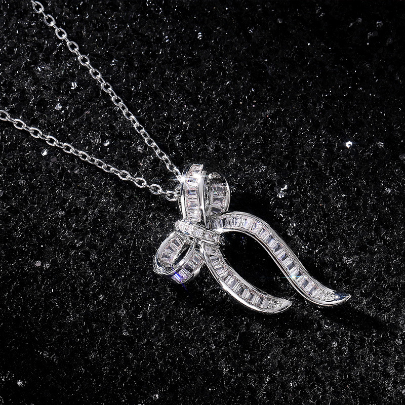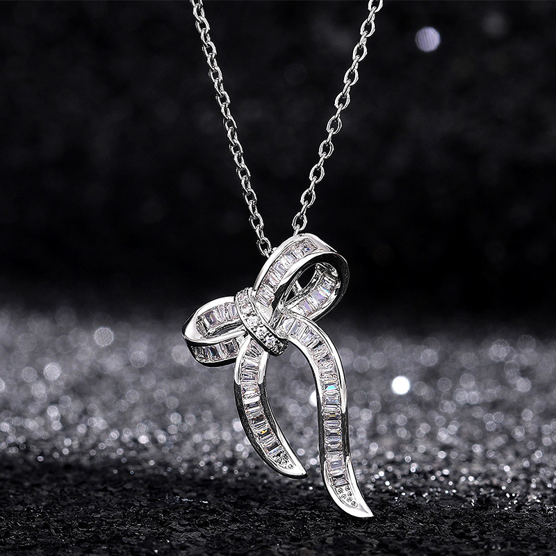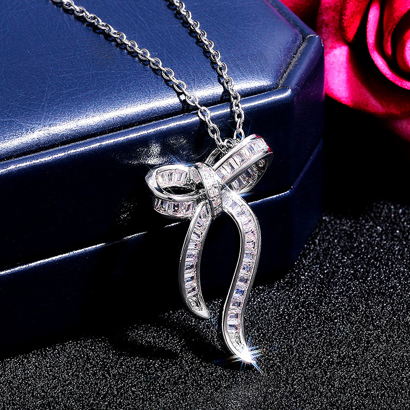 Spring new small fresh jewelry exquisite trapezoidal zircon bow necklace ladies T square clavicle chain