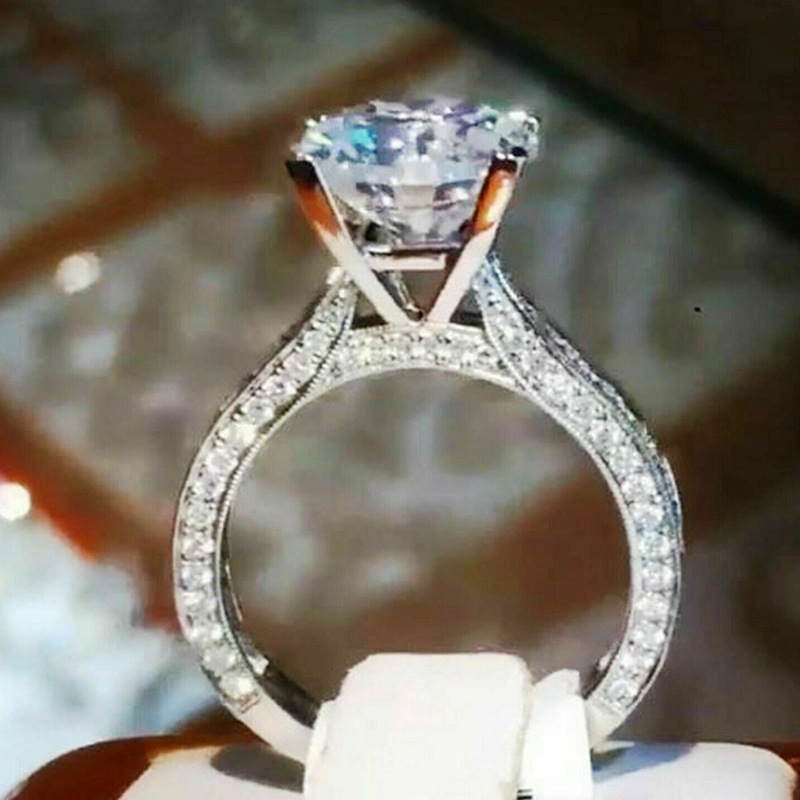 Micro-inlaid celebrity style classic all-match popular ring six-claw zircon wedding ring European and American style light luxury ring