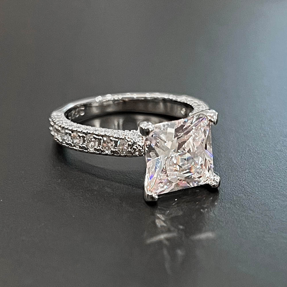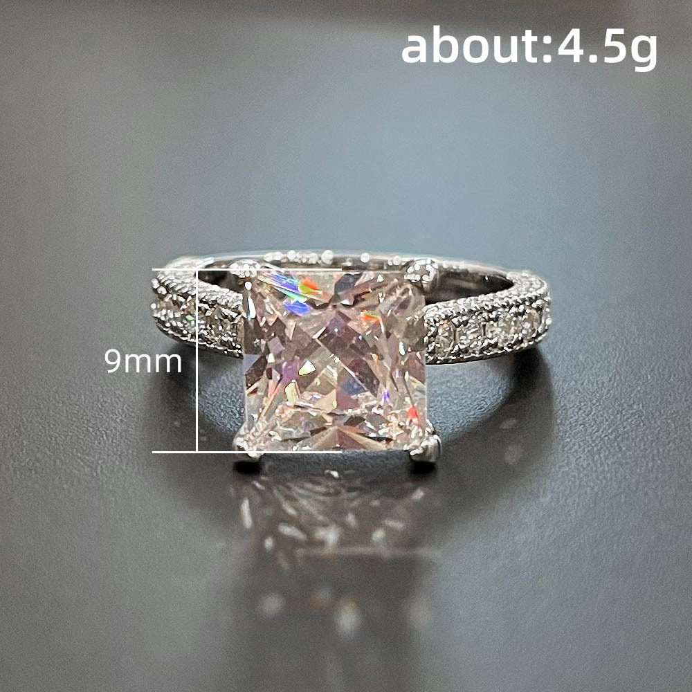 Spring new style wedding ring versatile square zircon engagement ring European and American imitation platinum plated jewelry wholesale