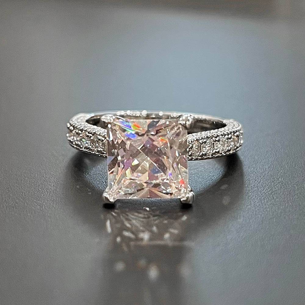 Hot selling new princess square ring European and American hot style inlaid zircon women's jewelry engagement proposal ring