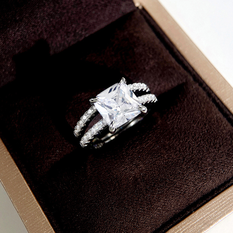 Square diamond four claw princess ring super shiny blingbling ring set European and American source jewelry