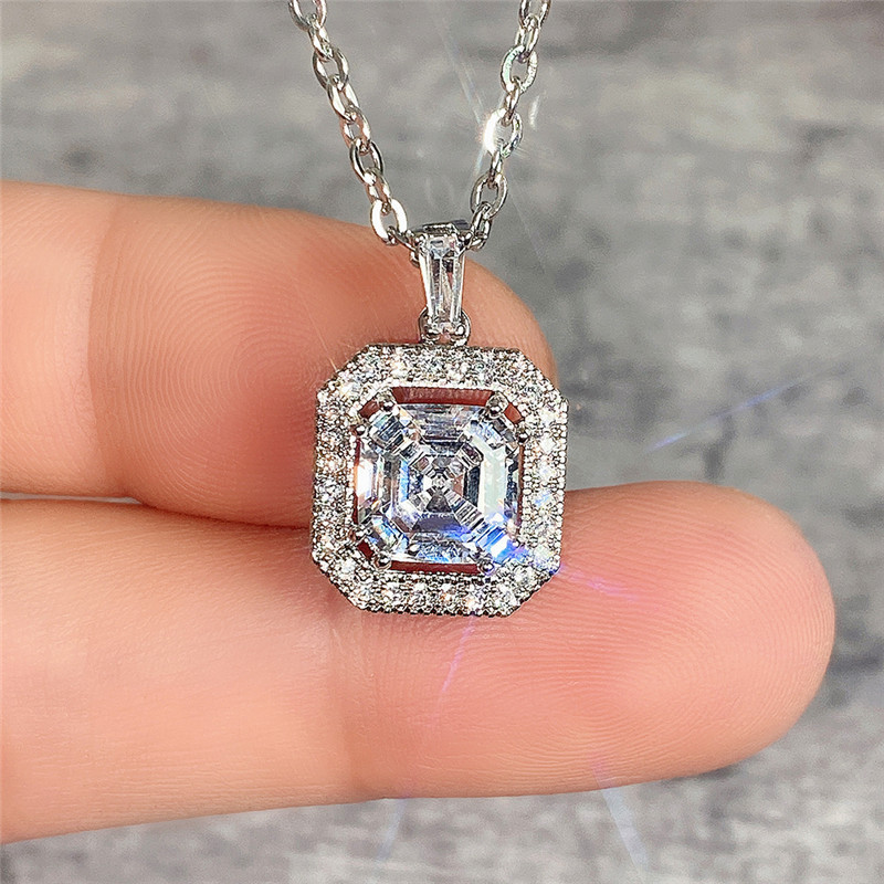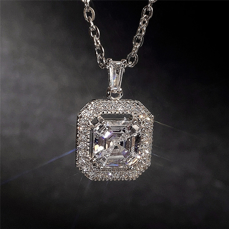Square zircon pendant European and American classic high-quality necklace accessories birthday gift jewelry manufacturers wholesale