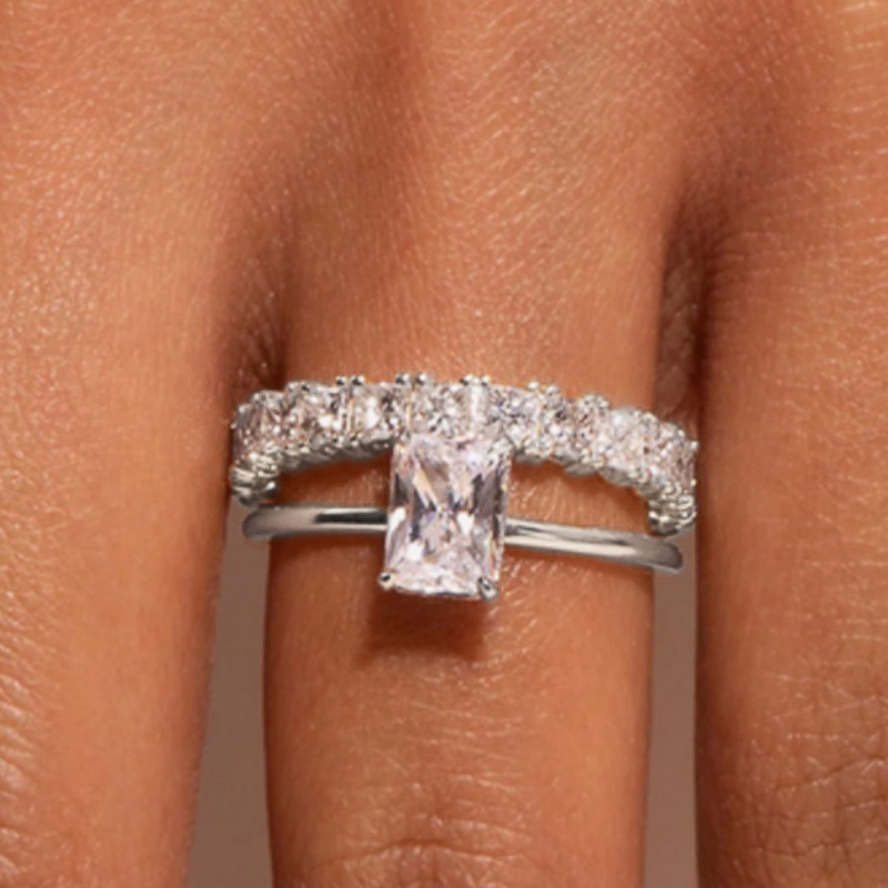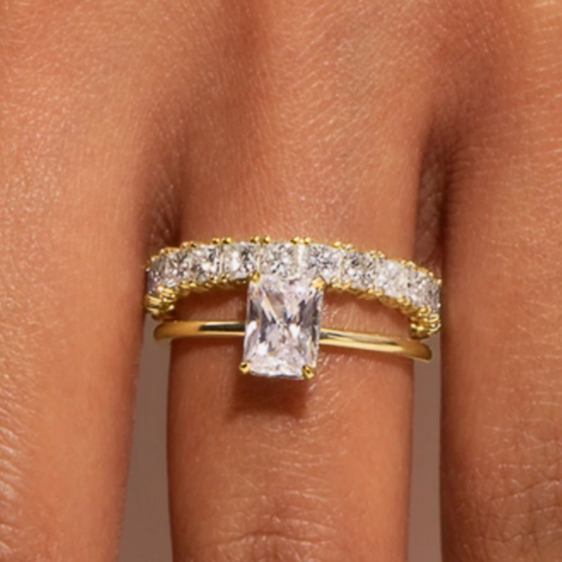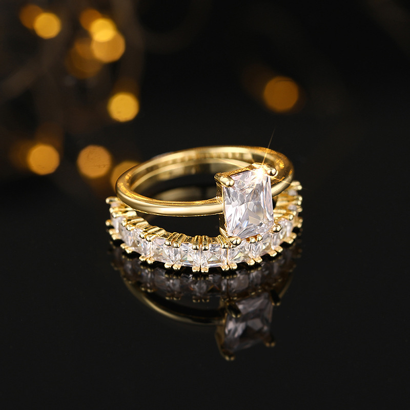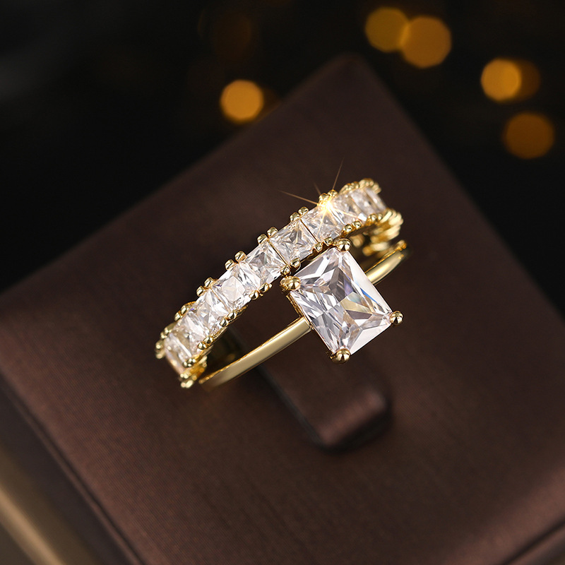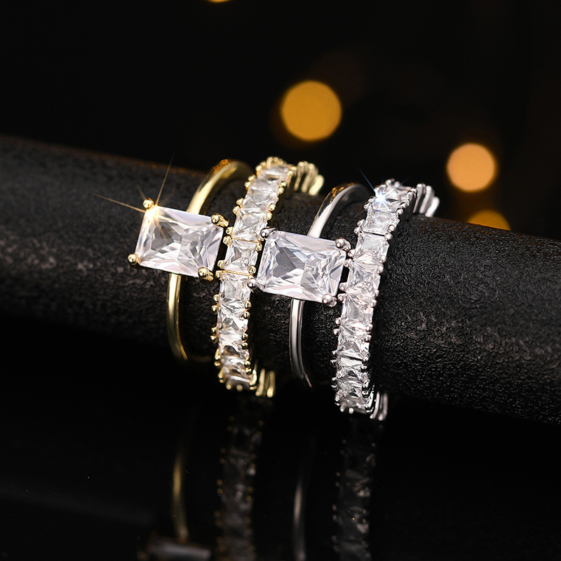 Stacking combination inlaid zircon and diamond couple rings for women fashionable geometric trend hot style engagement jewelry matching