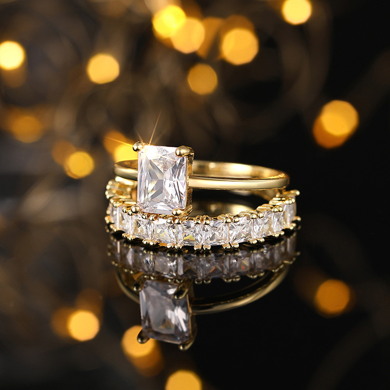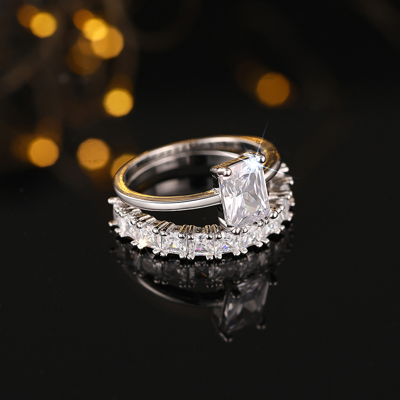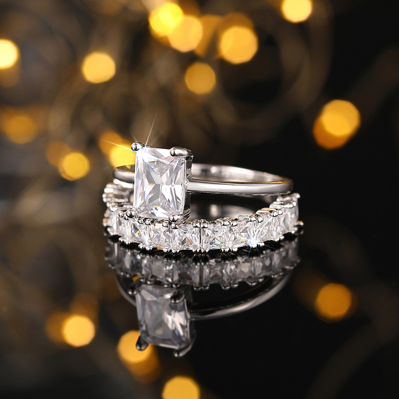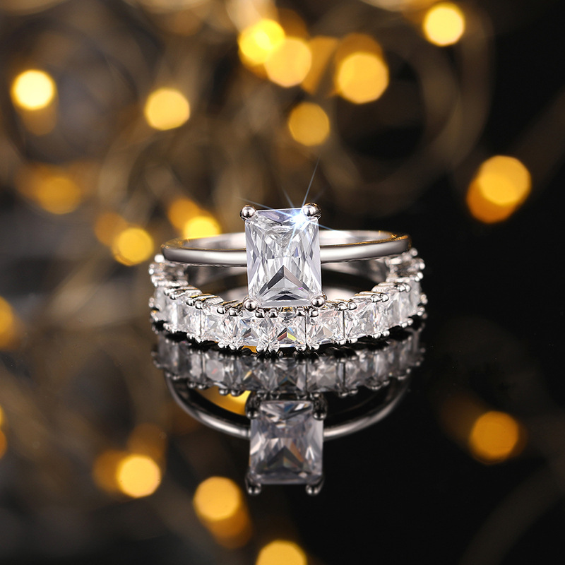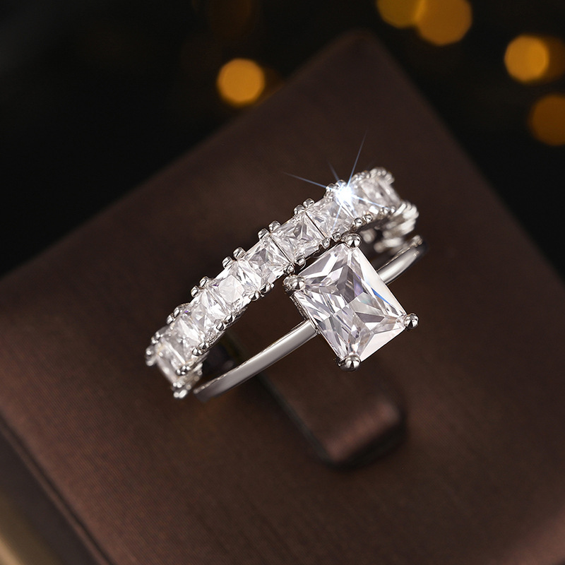 Hot selling new princess square ring European and American hot style inlaid zircon women's jewelry engagement proposal ring