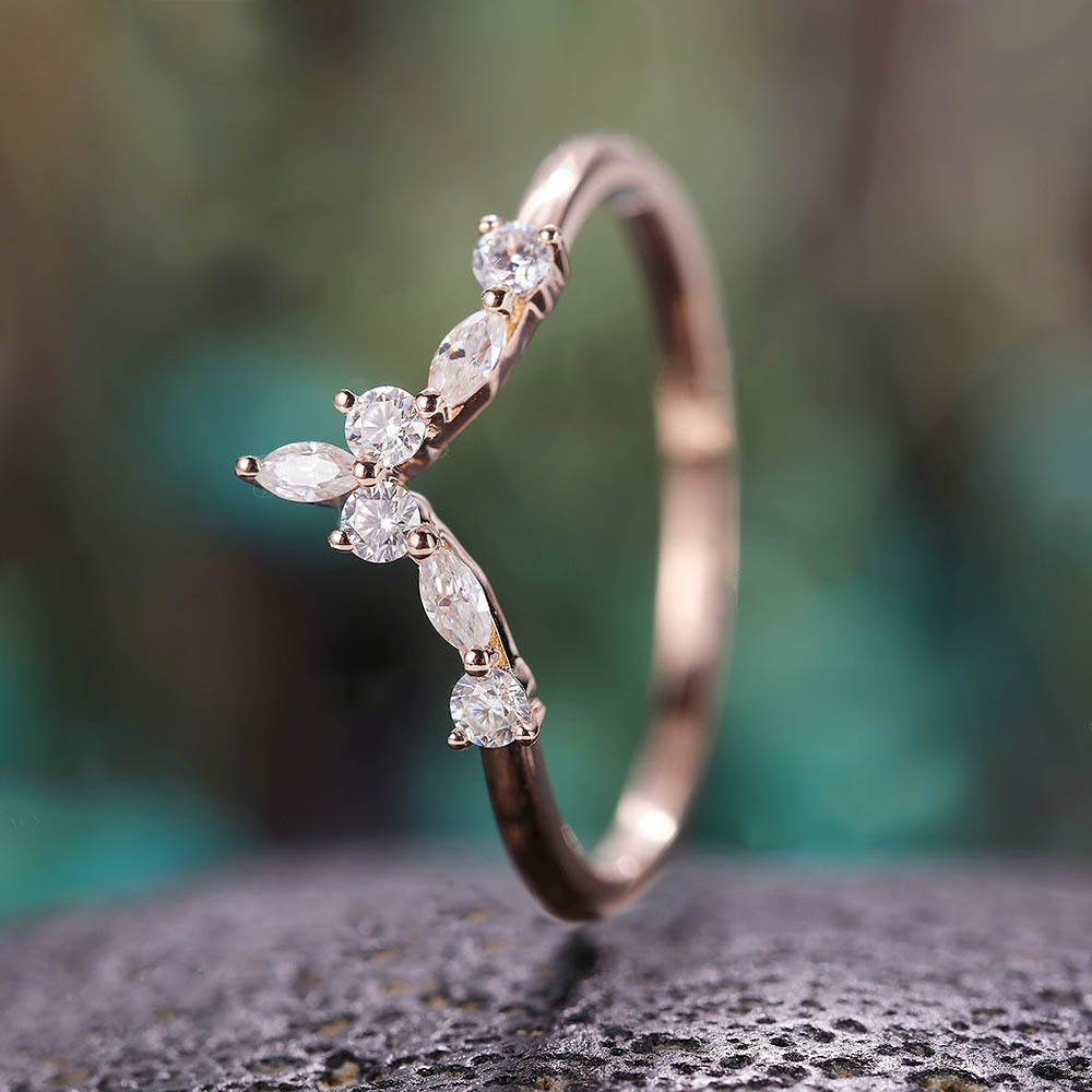 Stacking style niche design women's ring creative V-shaped marquise zircon geometric ring factory direct supply wholesale