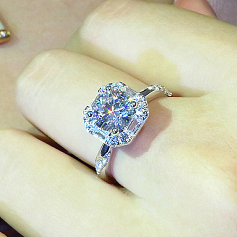 Micro-inlaid celebrity style classic all-match popular ring six-claw zircon wedding ring European and American style light luxury ring