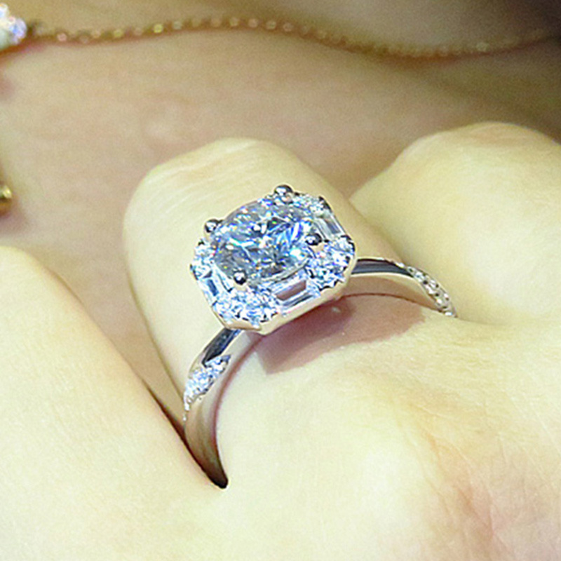 New zircon ring hollow cross four claws fashion design proposal wedding ring birthday gift ring