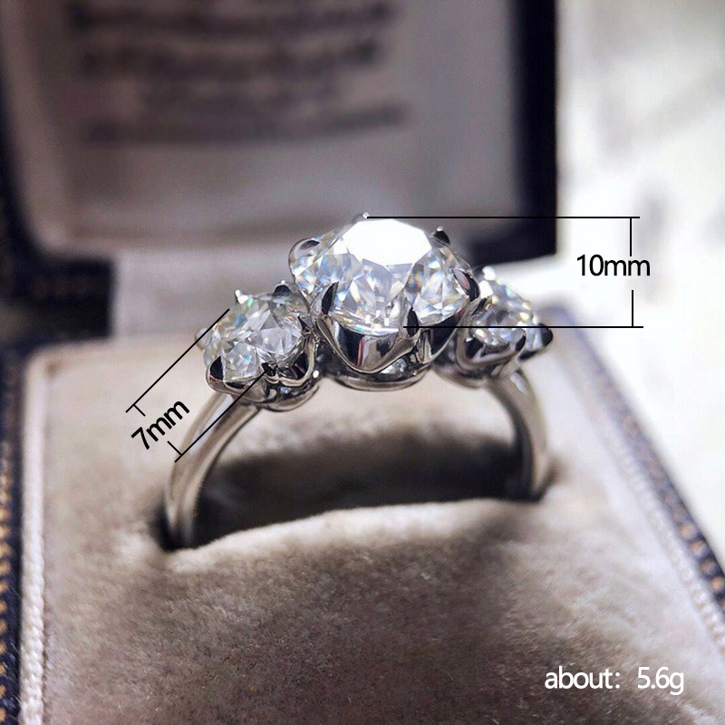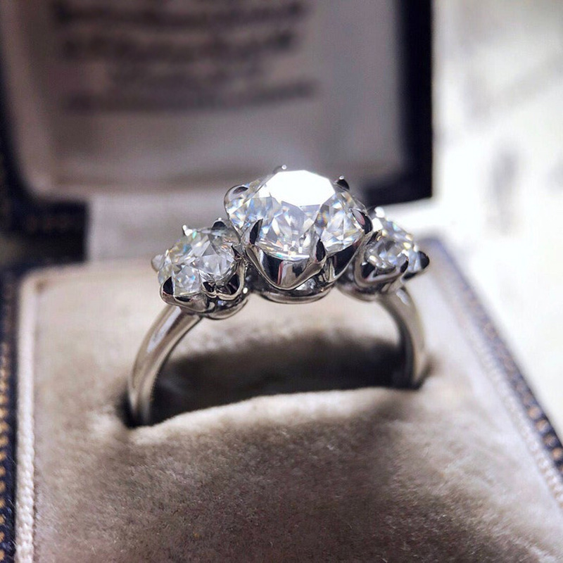 Star-style jewelry, European and American shining three zircon ring, female Internet celebrity fashion new ring
