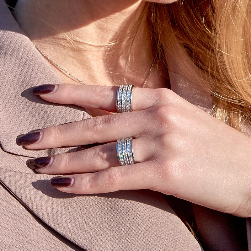 Starry sky hot ring European and American luxury engagement ring three-layer hip-hop trendy style