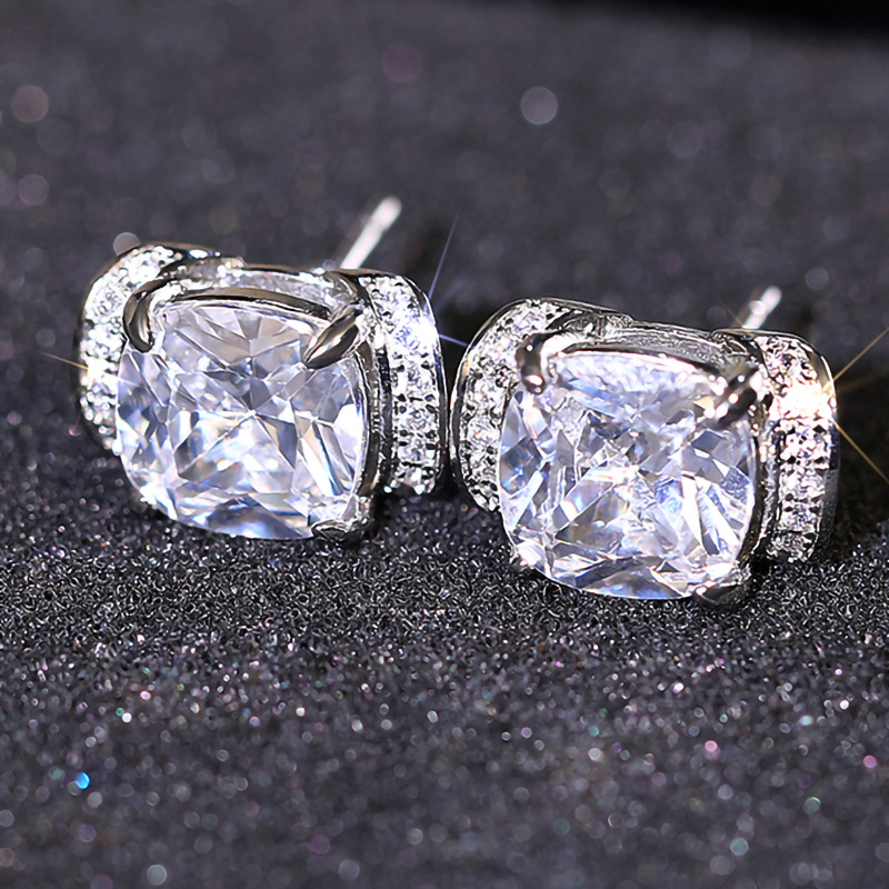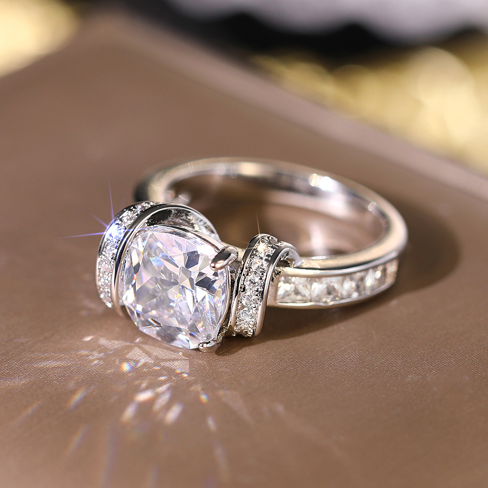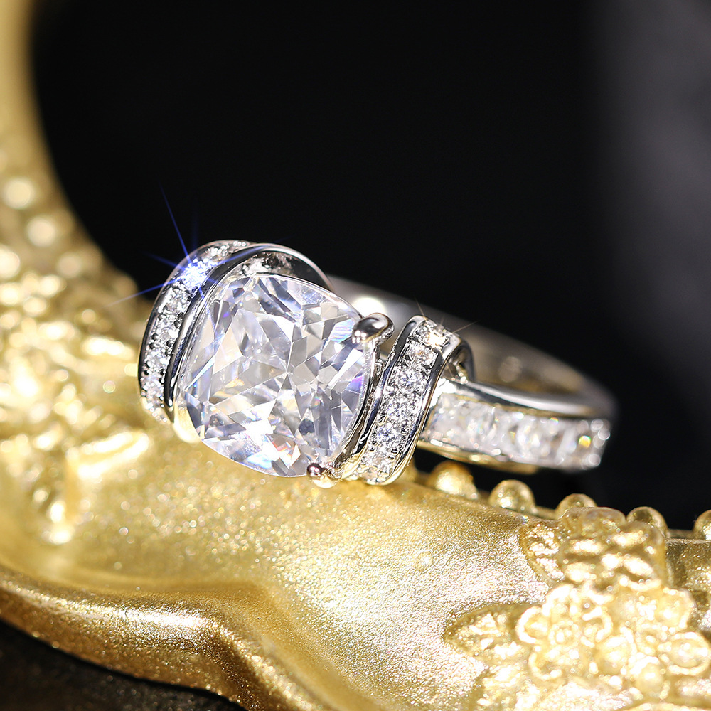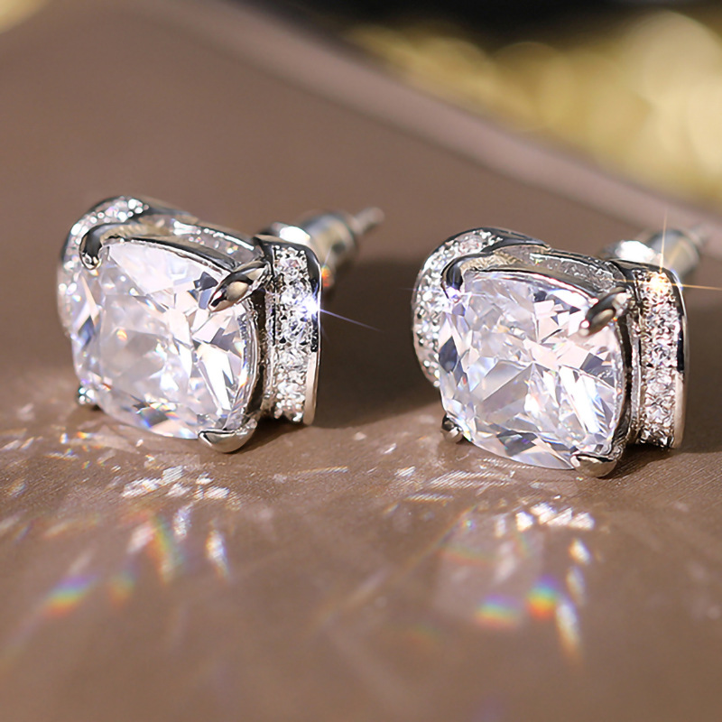 Sugar cube simulation princess ring high-end temperament ring earrings fashionable asymmetrical ring earrings set