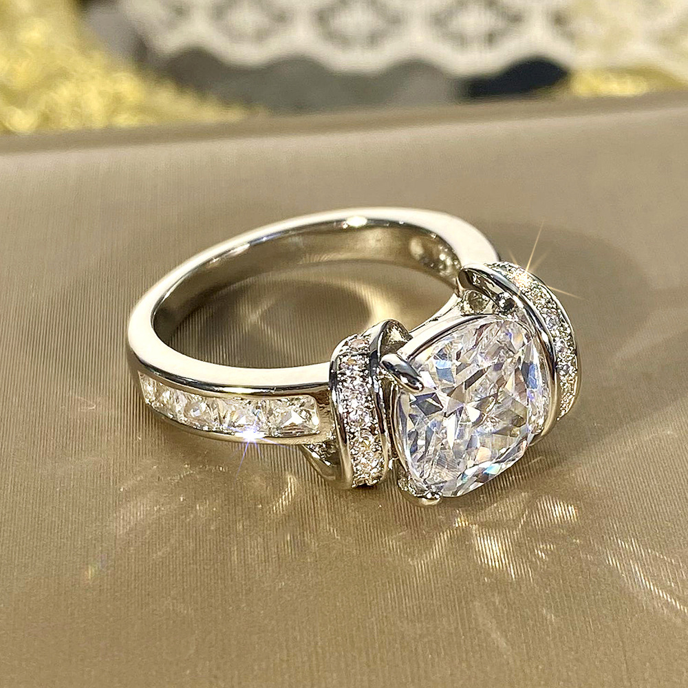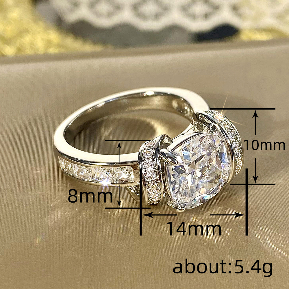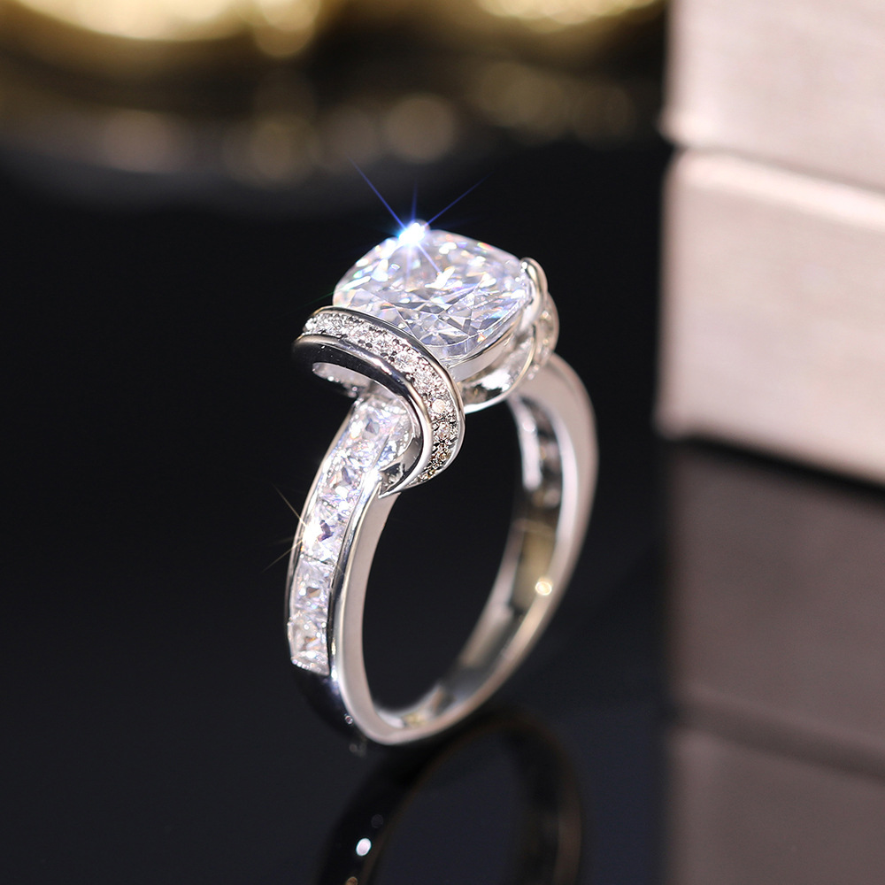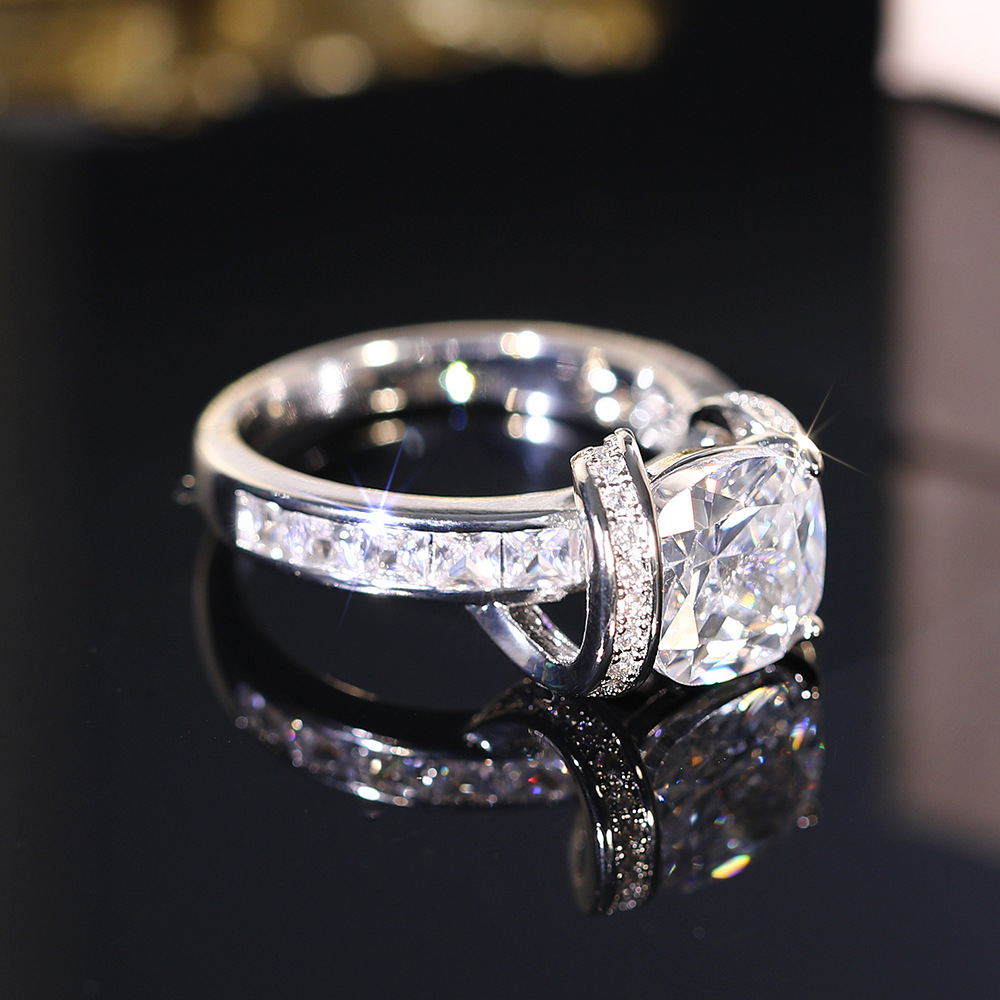 Sugar cube simulation princess ring high-end temperament ring earrings fashionable asymmetrical ring earrings set