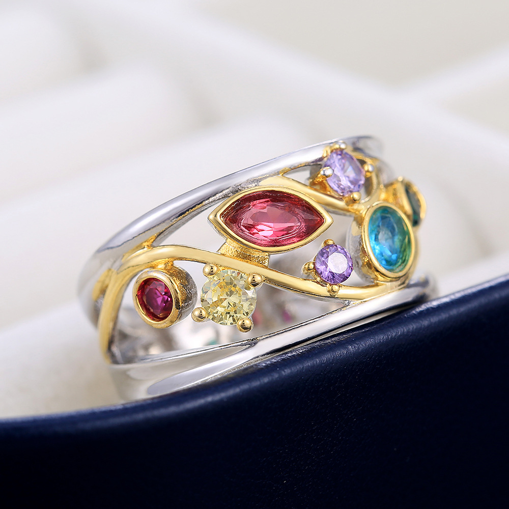 Summer new European and American style fashion multi-colored stone rings for women popular all-match hand jewelry wholesale