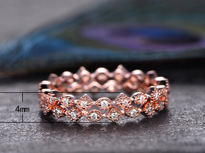 Classic four-claw imitation zircon micro-inlaid ring women's double row two-color twist arm ring engagement wedding ring women