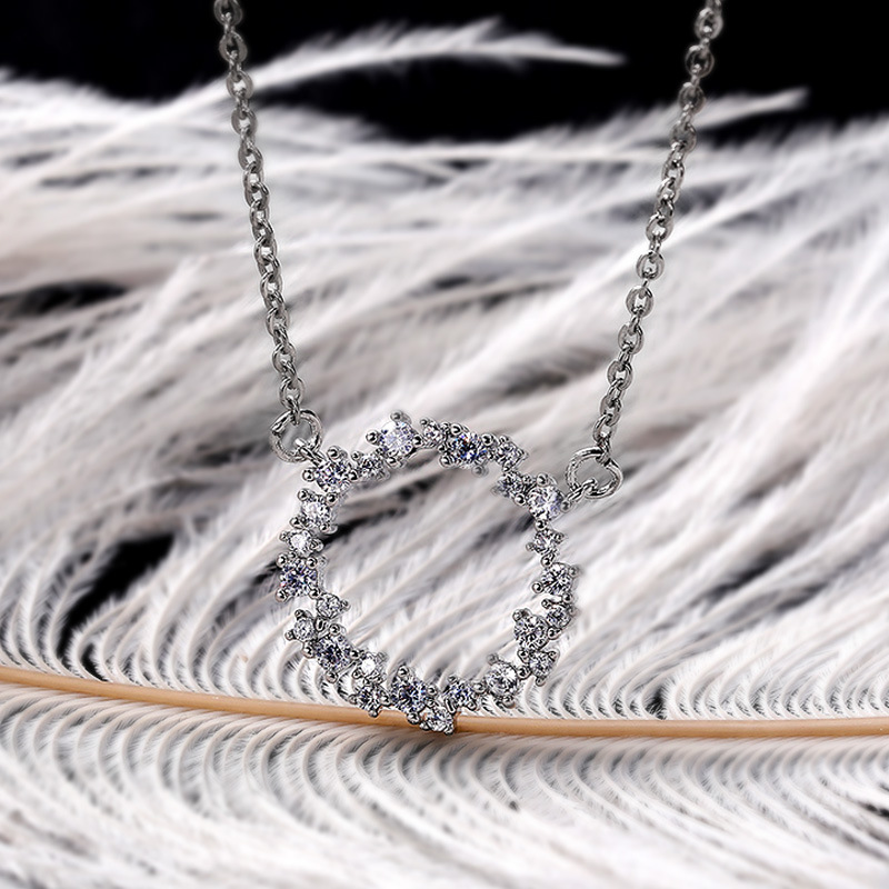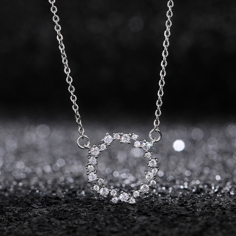 Summer niche new simple circle inlaid with full diamond super flash women's clavicle chain fashion versatile necklace
