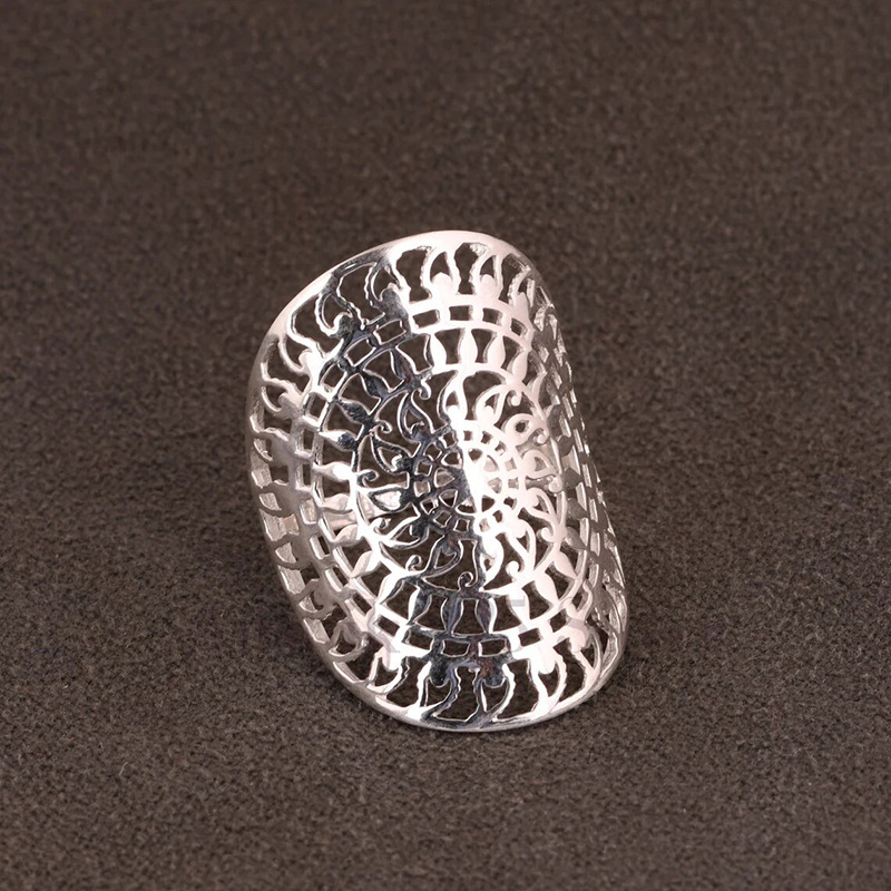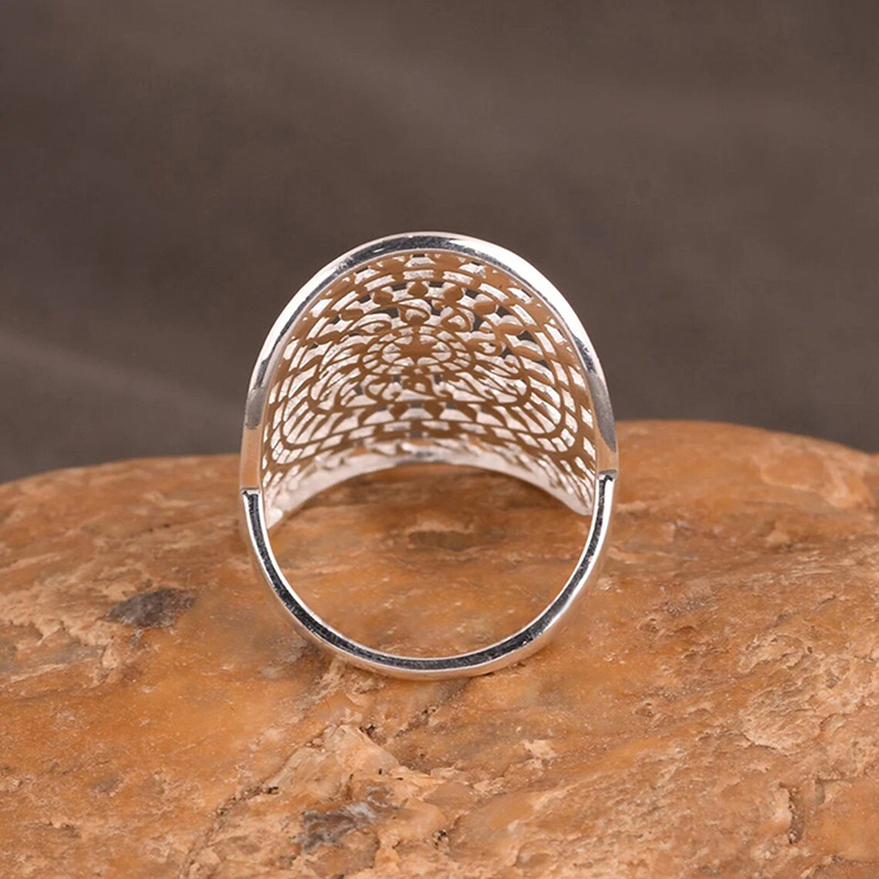 Classic retro engraved auspicious flower ring classical wide version Miao ring Yunnan ethnic style men and women's jewelry