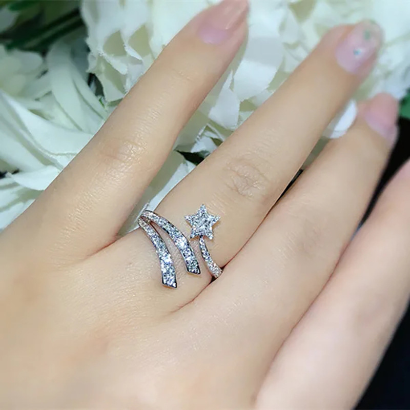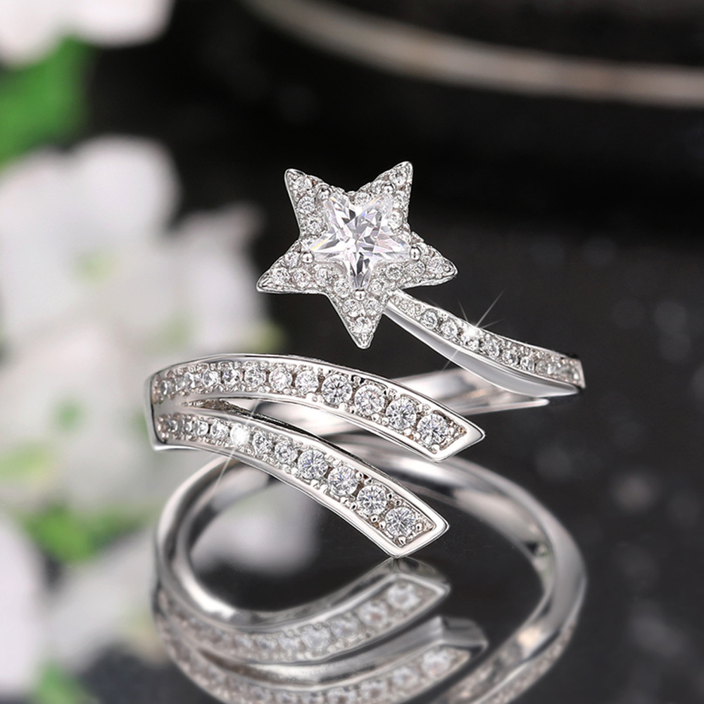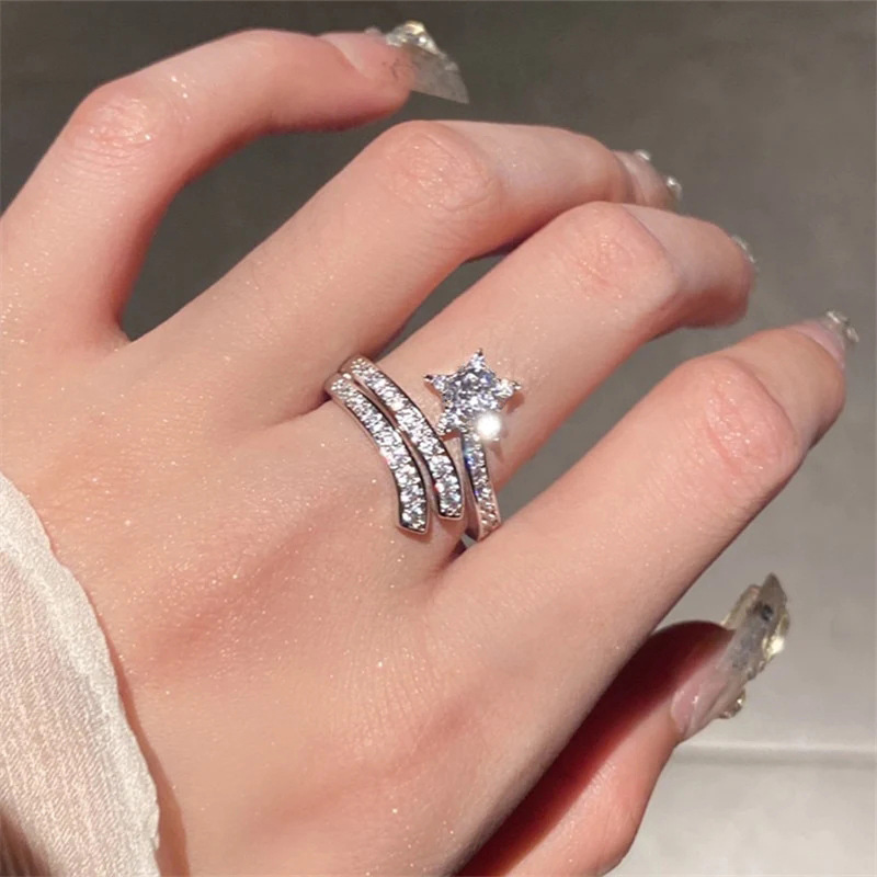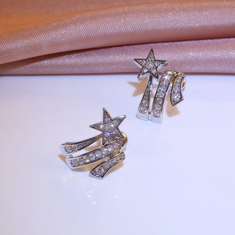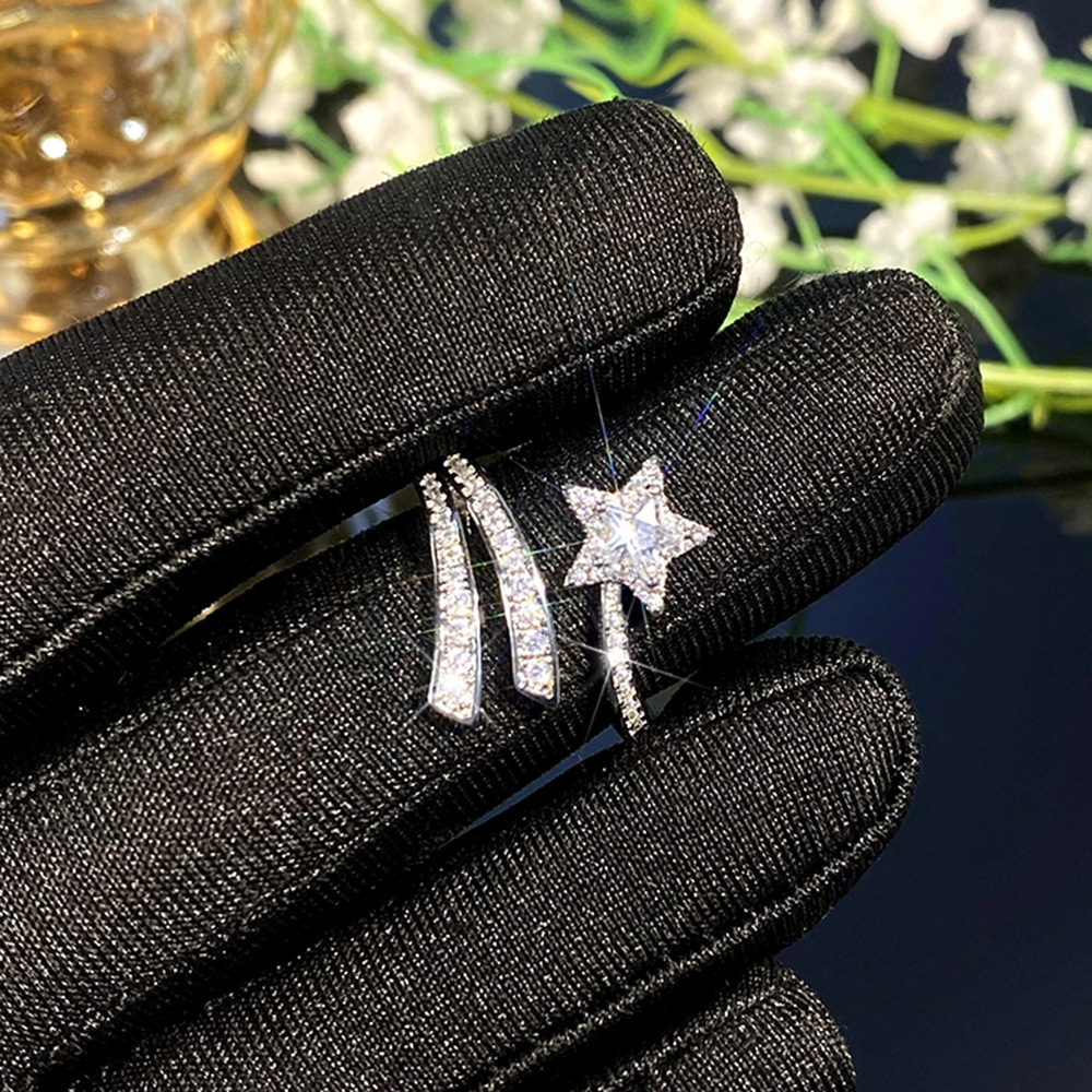 Super fairy design ring double layer wrapped sun and moon star open ring star meteor earring jewelry set