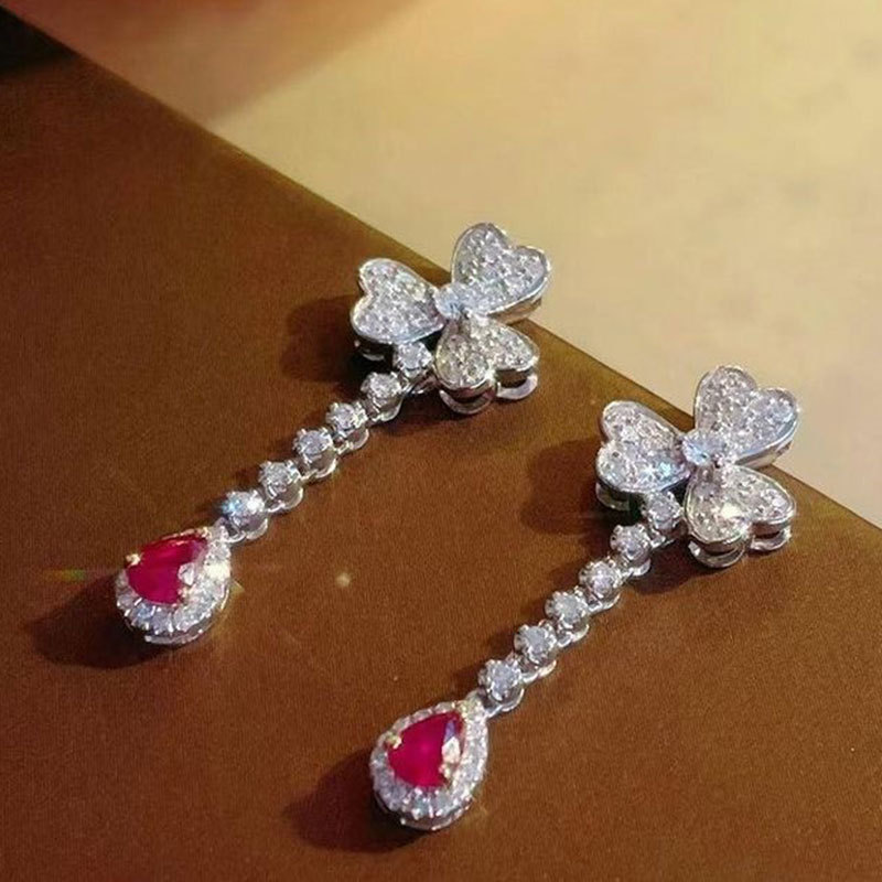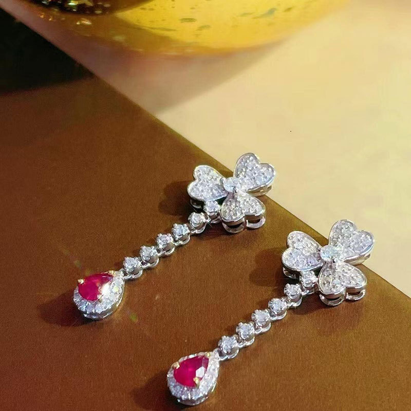 Super fairy temperament flower earrings light luxury high-end pear-shaped teardrop earrings European and American Internet celebrity fashion earrings