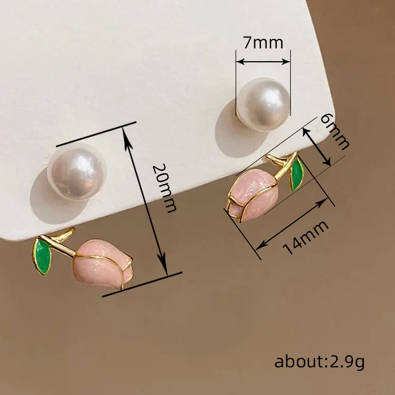 Super fairy tulip imitation pearl earrings new style simple niche ear clip small fragrance style lady earrings