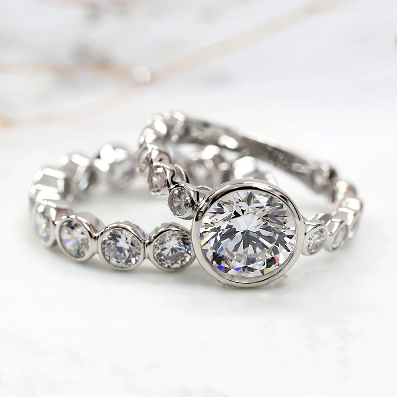 Micro-inlaid celebrity style classic all-match popular ring six-claw zircon wedding ring European and American style light luxury ring