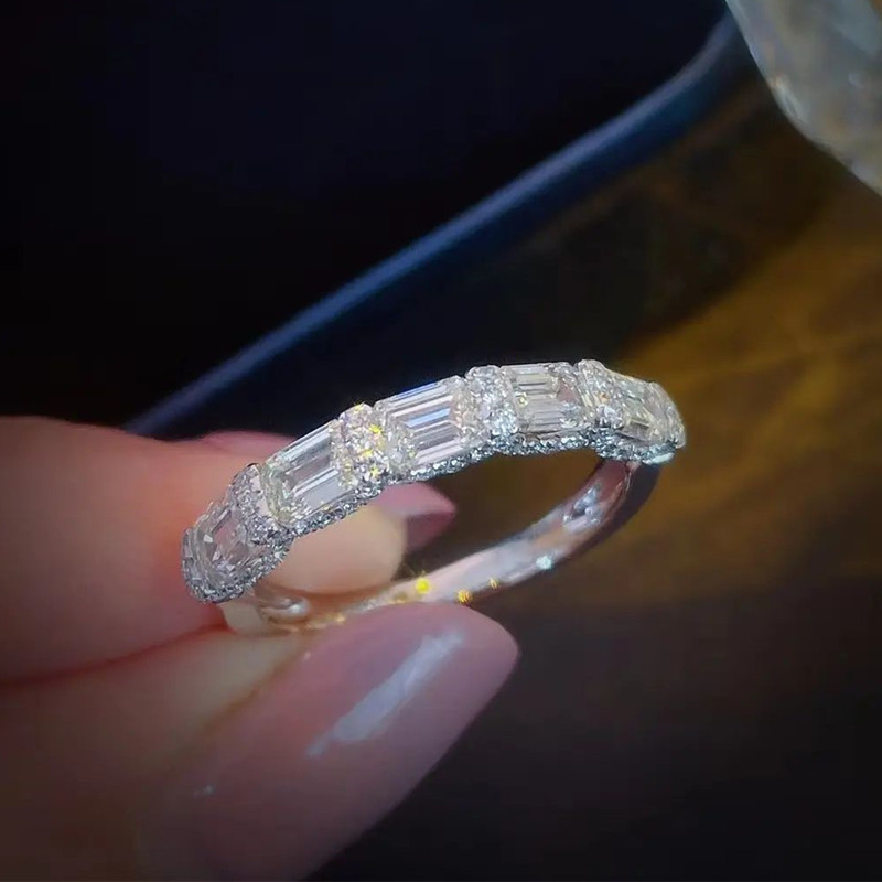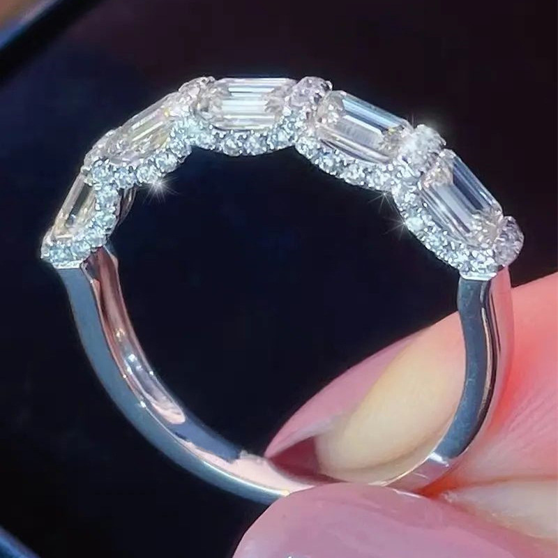 Super flash T square diamond ring niche design light luxury micro inlaid zircon ring exquisite high-end ring