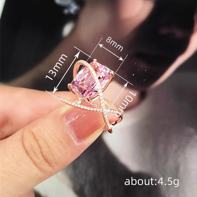 Sweet and cool celebrity style pink diamond ring for women, geometric inlaid zircon sparkling ring, elegant design single ring