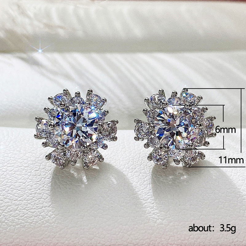 Sweet and cool style flower women's earrings exquisite full diamond zircon flower earrings European and American earrings