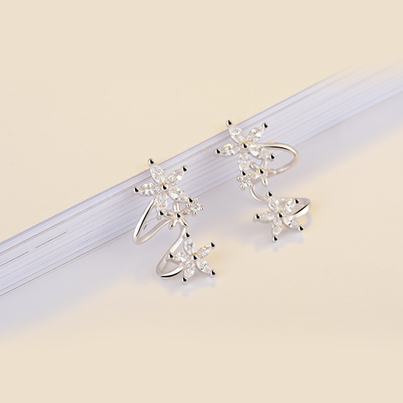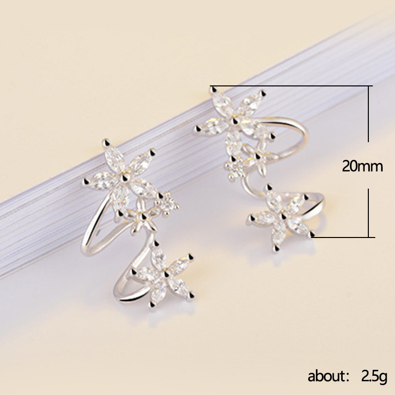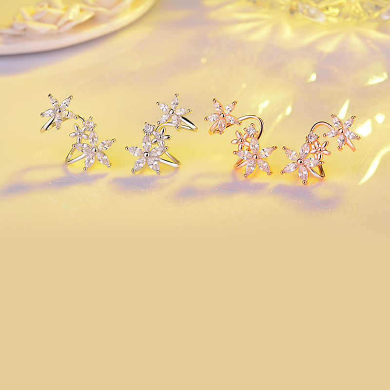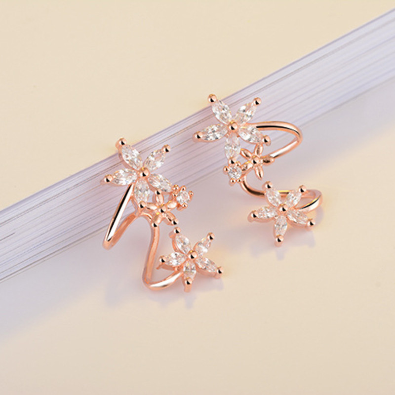 Sweet and cool style lady flower arc ear clip fashionable and versatile zircon ear studs new temperament women's earrings