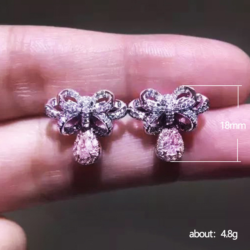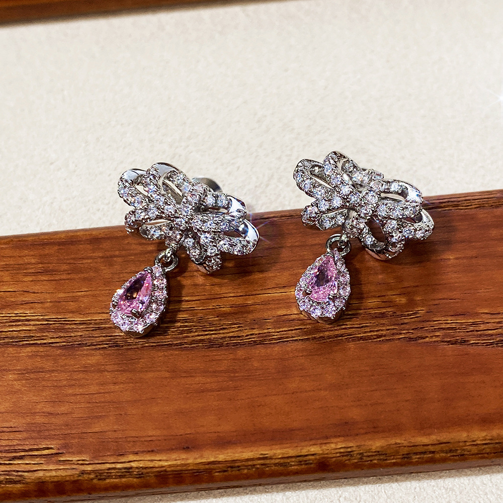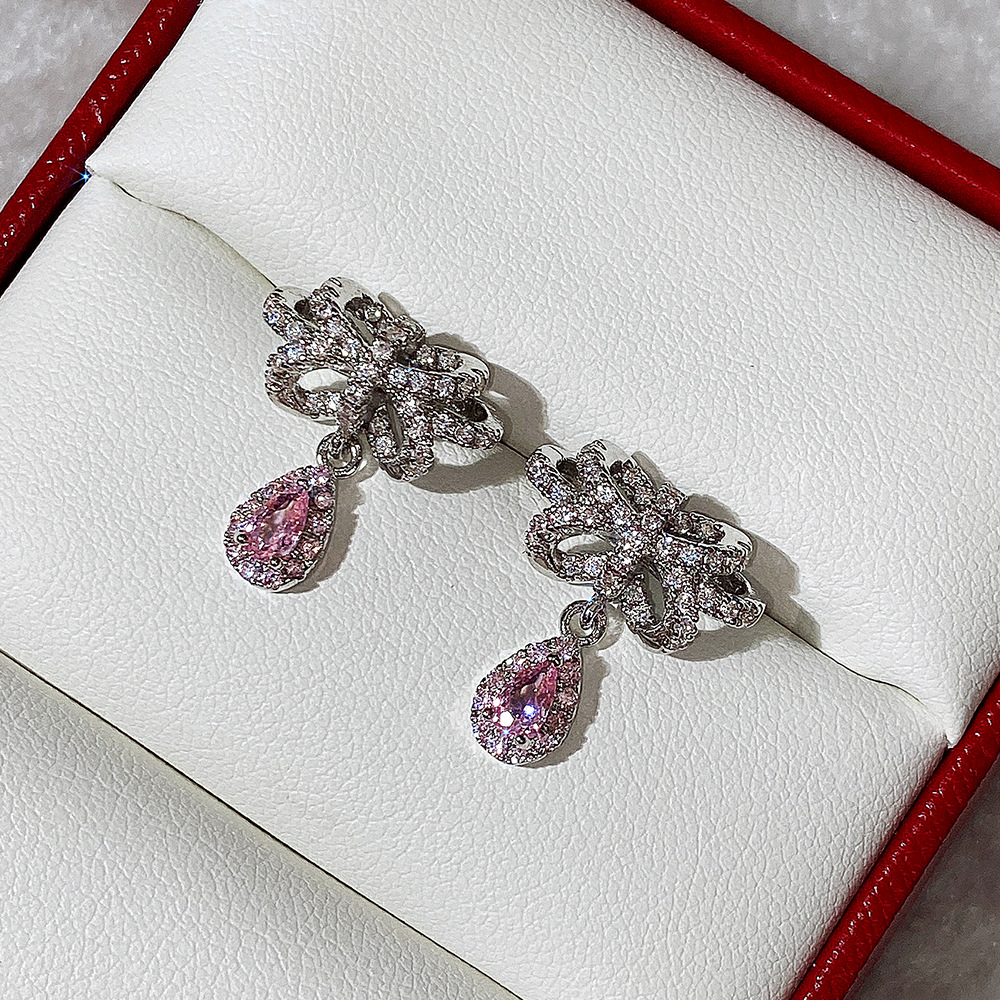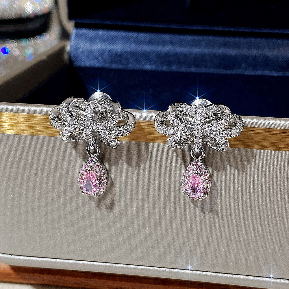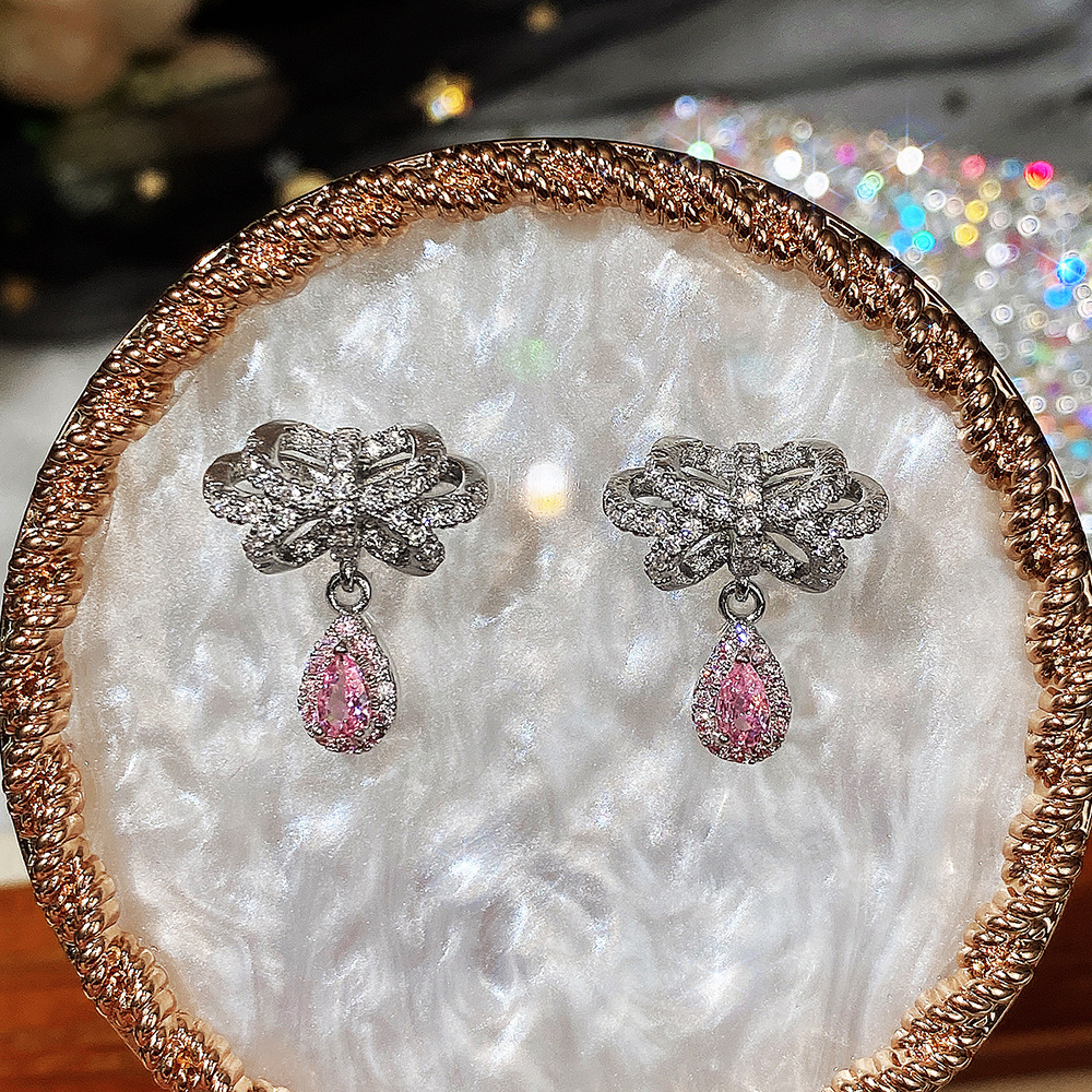 Sweet girl pink bow earrings heavy design light luxury style earrings net celebrity earrings