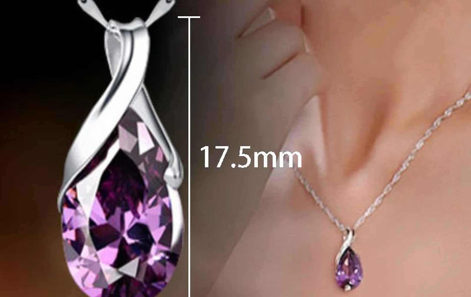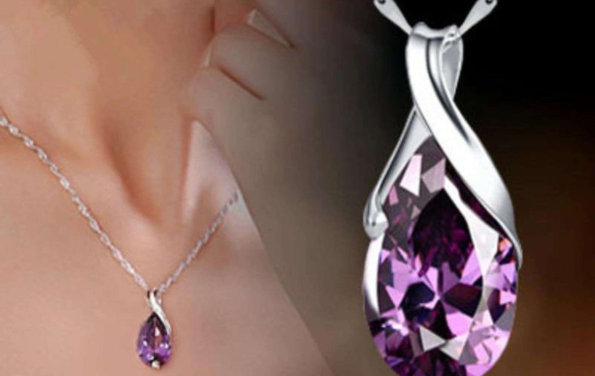 Sweet Purple Crystal Women's Necklace Angel's Tear Drop Pendant Fashion Necklace Manufacturer Wholesale