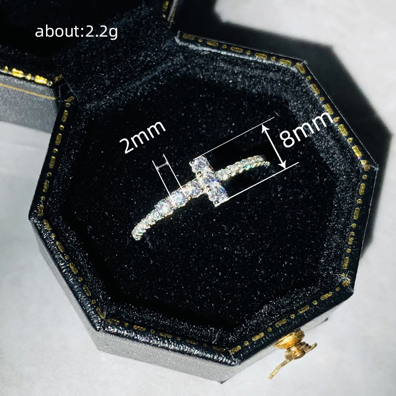 T-shaped simple women's ring moissanite internet celebrity simple design Chinese Valentine's Day gift exquisite and versatile index finger