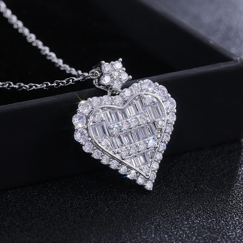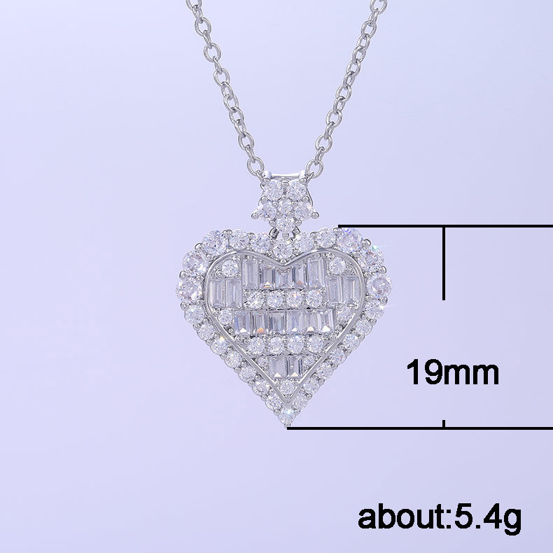 T-square zircon heart-shaped necklace, T-square zircon sugar heart splicing and cluster inlay engagement clavicle necklace