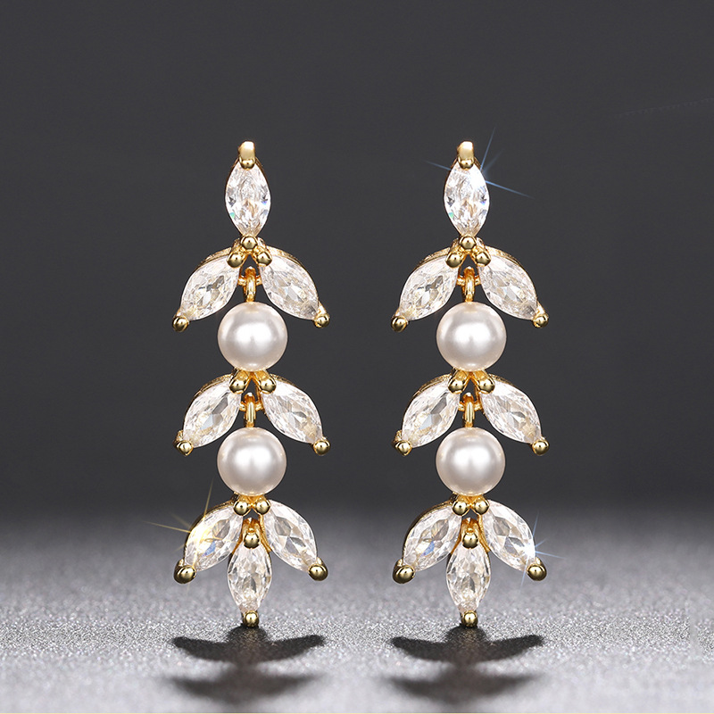 Tassel long light luxury style high-end earrings floral beads exquisite earrings elegant temperament style jewelry