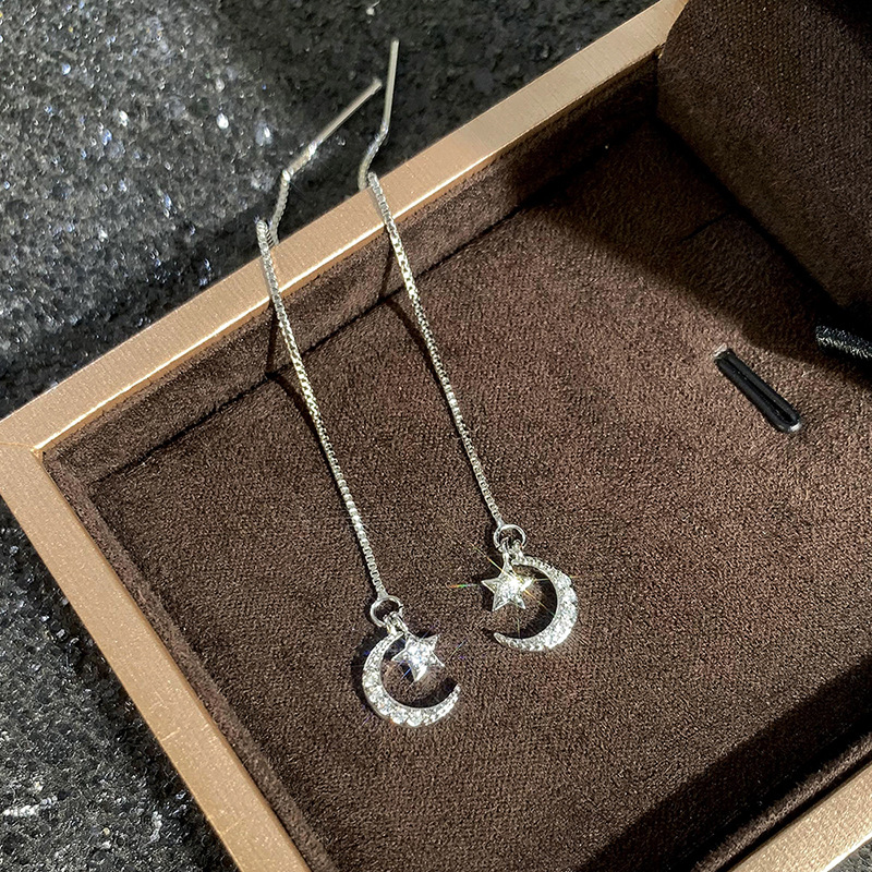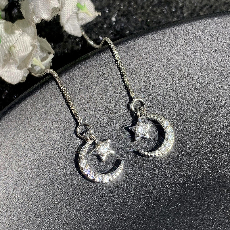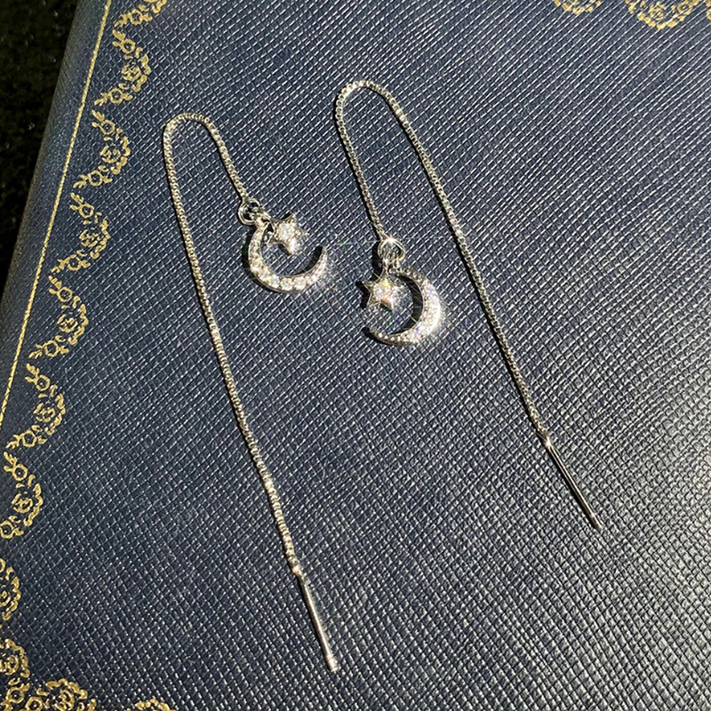 Tassel new long earrings for women, star and moon chain earrings, sweet design