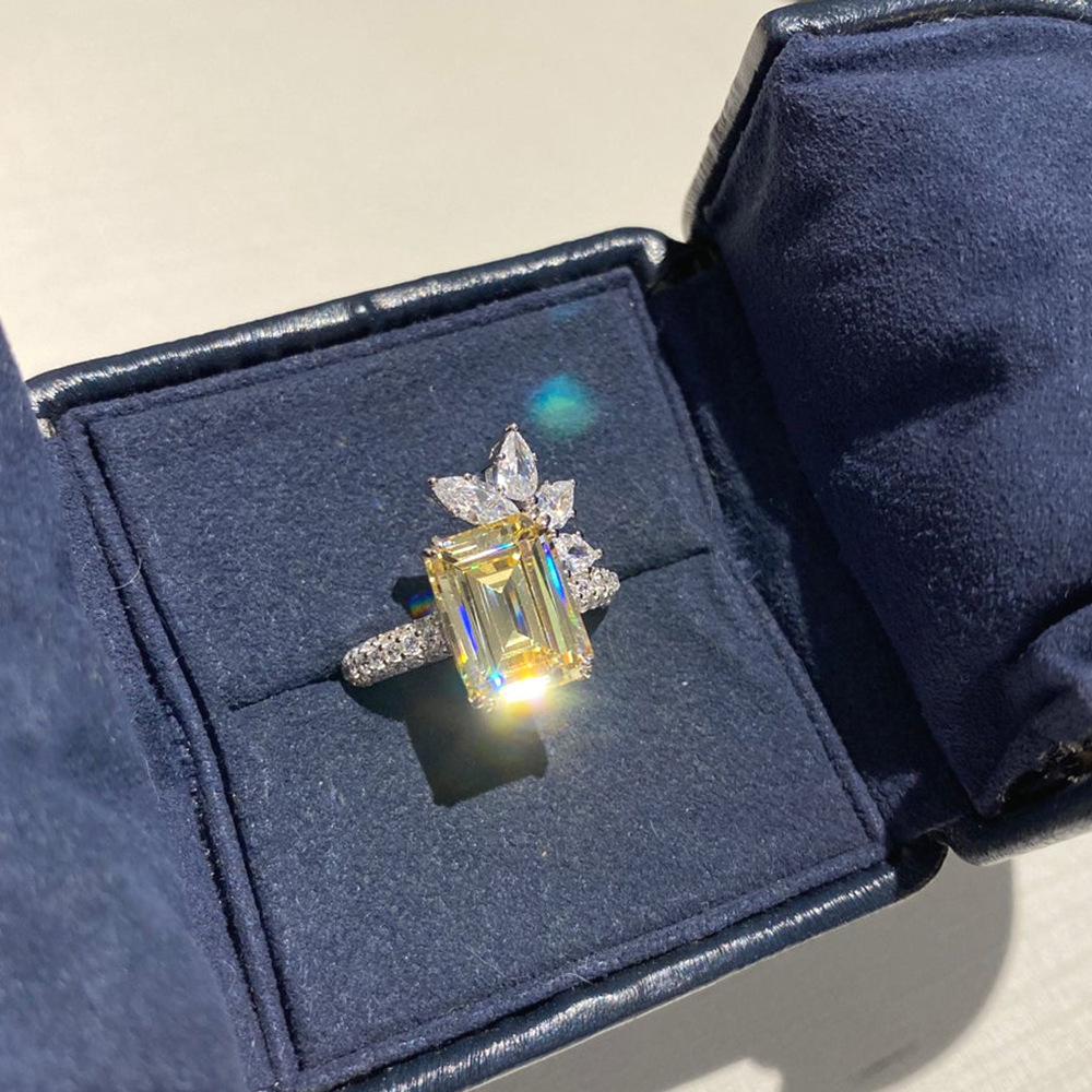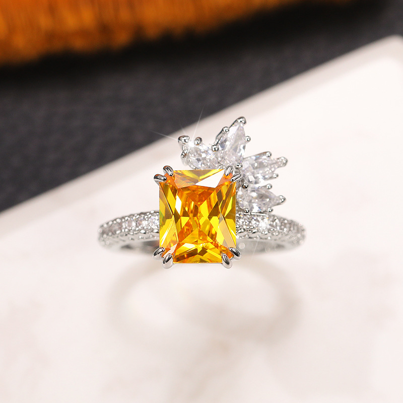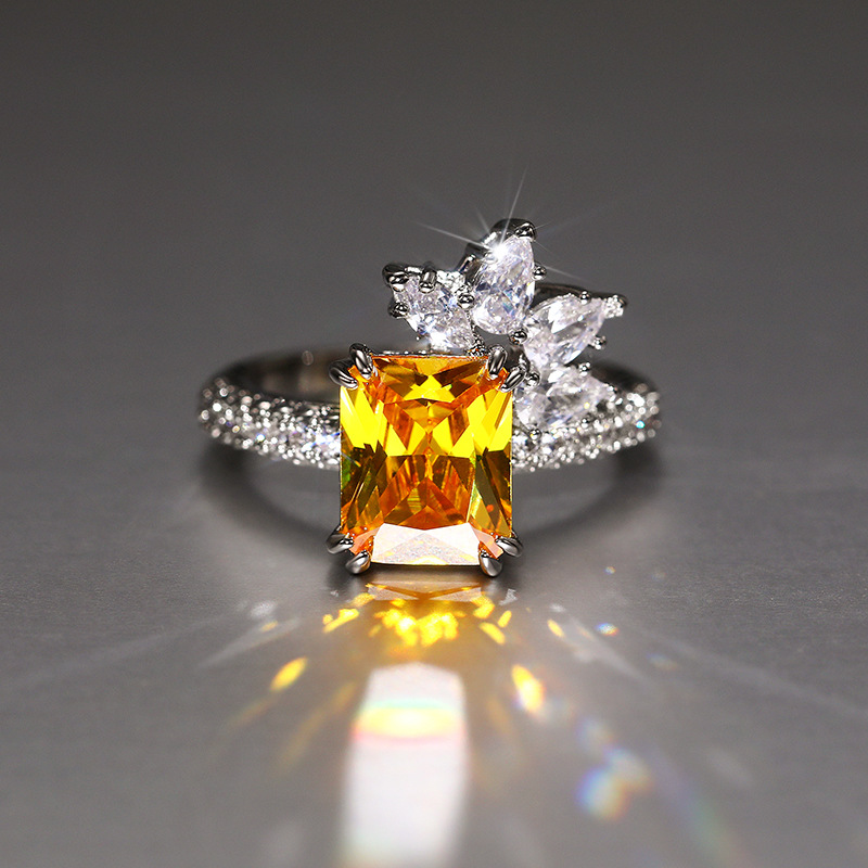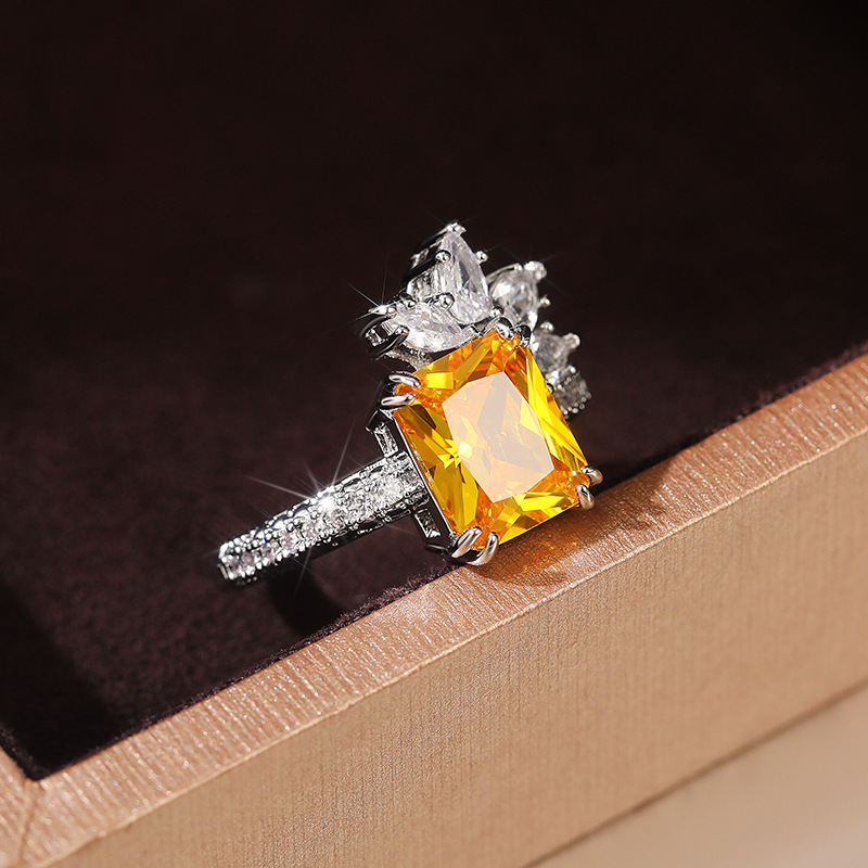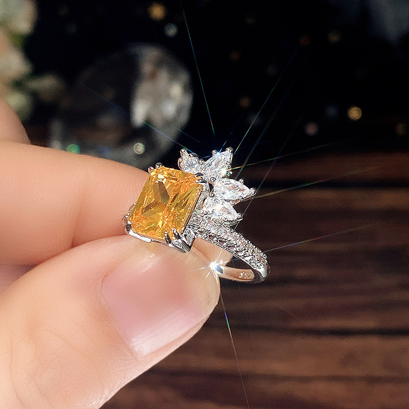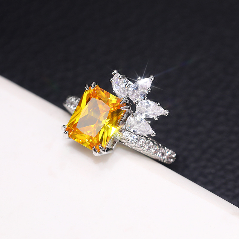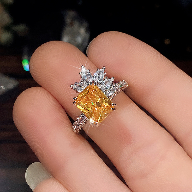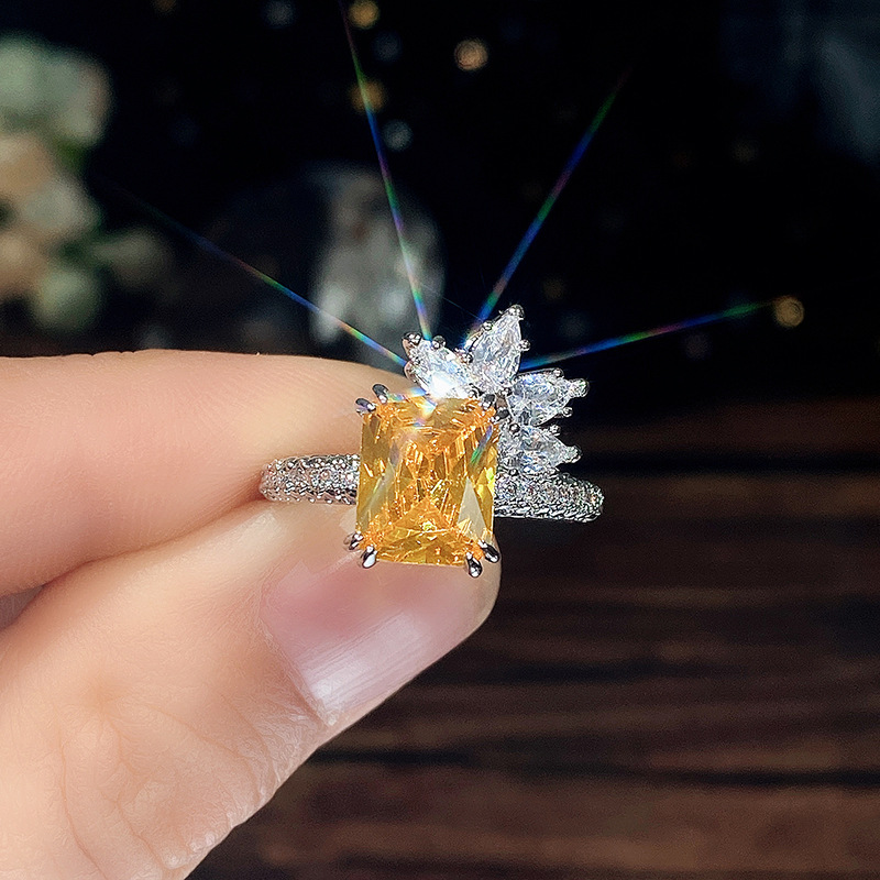 Temperament princess diamond zircon ring retro yellow diamond flower women's ring super flash fashion lace ring